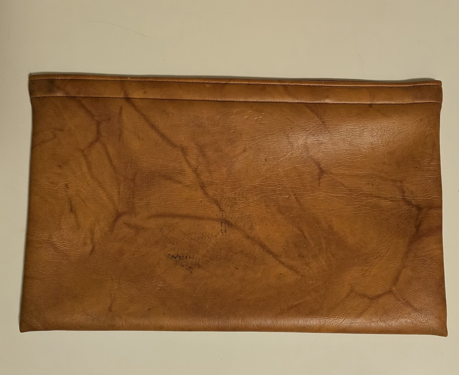 Vintage 80s Brown Soft Leather Executive Document Folio Pop / Spring Frame Lined Envelope Style Case - Approximately 16.5" x 10".