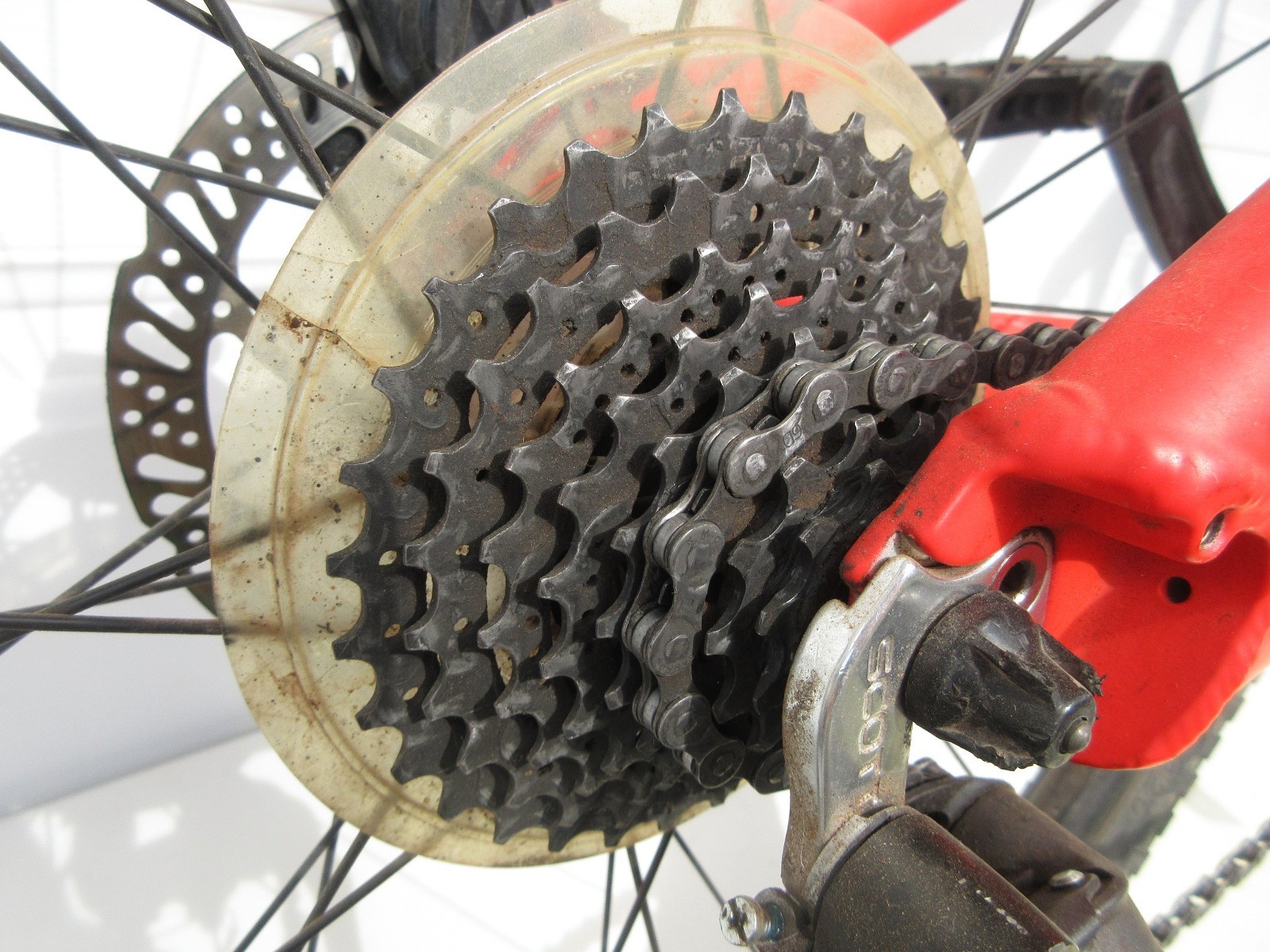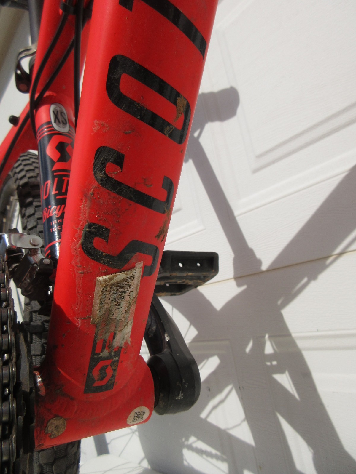 There's a couple spots of cracked or missing plastic - in the gear shift is missing a cover, and the plastic wheel guard has a crack. The derailleur also seems like it could use minor adjustment, as there's a tiny bit of chain rubbing/clicking. Frame is super solid and so are attachments. Tires have plenty tread, and inner tubes hold air. Disc brakes are working great.