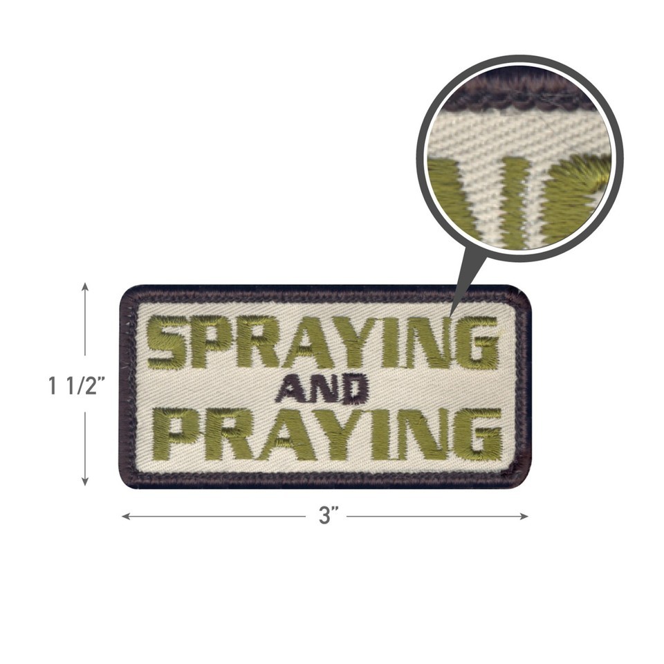 Spraying and Praying Embroidered Morale Patch w/ Hook + Loop Back 1.5 X 3