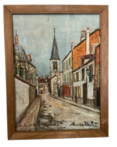 Maurice Utrillo Print French Village Street Scene Canvas Framed 25.5" x 20” Vtg