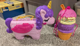 LOT OF 2 LARGE POLLY POCKET PLAYSETS UNICORN AND ICECREAM W/ ACCESSORIES + MORE!