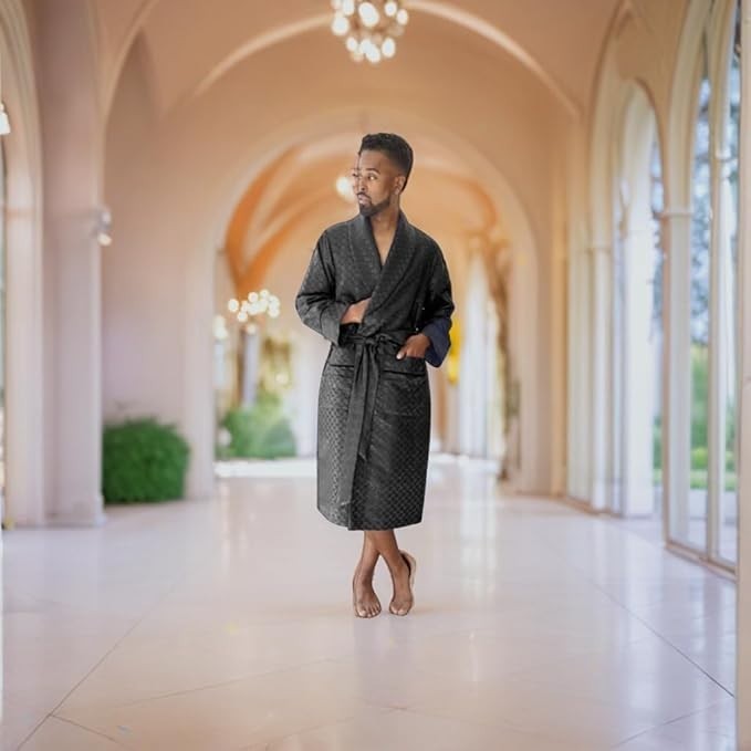 Menz Lyfe Black Imperial Jacquard Smoking Jacket Made in USA - Made Exclusively