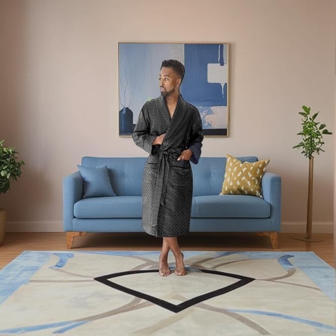 The Menz Lyfe Black Imperial Jacquard Smoking Jacket for Men is a luxurious lounge coat designed for men who appreciate both style and comfort. Made with high-quality jacquard material, this regular fit jacket comes in a sleek black color and features a smoking jacket style, adding a touch of sophistication to any outfit. With its free size and elegant design, this jacket is perfect for relaxing at home or adding a touch of refinement to a special occasion.
