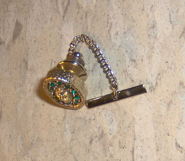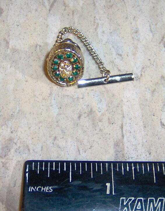 Dante Vintage Tie Tack Pin gold color green color encrusted stones 1960s