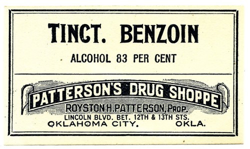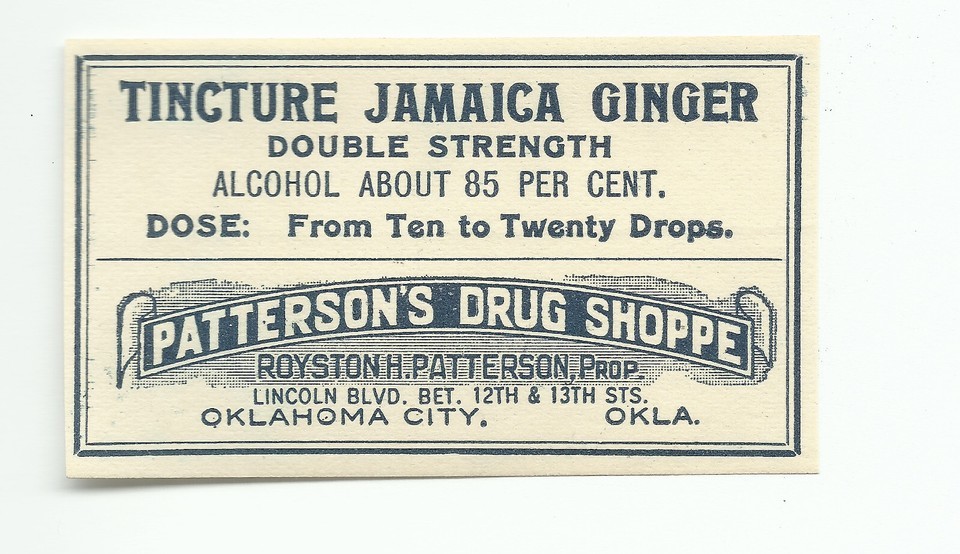 1 Vintage Label TINCTURE JAMAICA GINGER Patterson's Drug Shoppe Oklahoma City OK