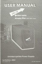 FOR SALE IS ONE (1) PRINTED USER MANUAL YnO.1P FOR DIRECT UPS VESTA PRO 400/600/800 UNINTERRUPTIBLE POWER SUPPLY - 1ST EDITION, 2004 614-05604-03 28-2BLA000034. 12 PAGE BLACK AND WHITE OEM FROM THE MANUFACTURER, SMALL, BUT FULL OF HELPFUL INFORMATION. THIS USER MANUAL COVERS, INSTALLATION AND OPERATION, CHARGING, PERIPHERAL EQUIPMENT CONNECTION, MODEM PHONE LINE CONNECTION, SERIAL CABLE CONNECTION, ETC. YOU WILL RECEIVE ONE (1) USER MANUAL ONLY, SHIPPED BY USPS.....