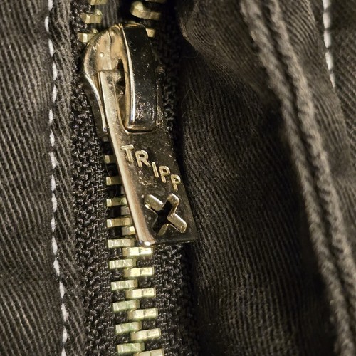 Excellent Condition Vintage 90s Tripp NYC Bondage Style Denim Jeans Pants Chains Baggy Goth Skater Punk Men's Size 2X. Actual measurements: 42" waist, 29" inseam, 19" across ankles. Large pockets. The back of the calves can be zipped up.