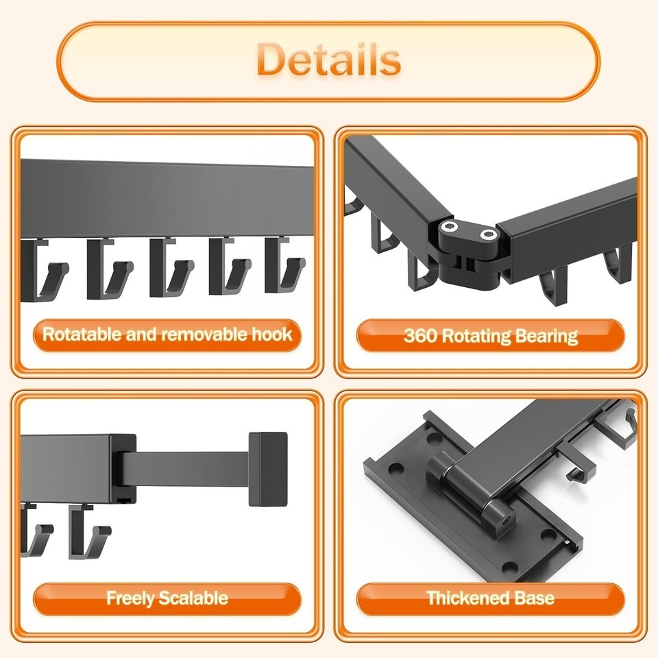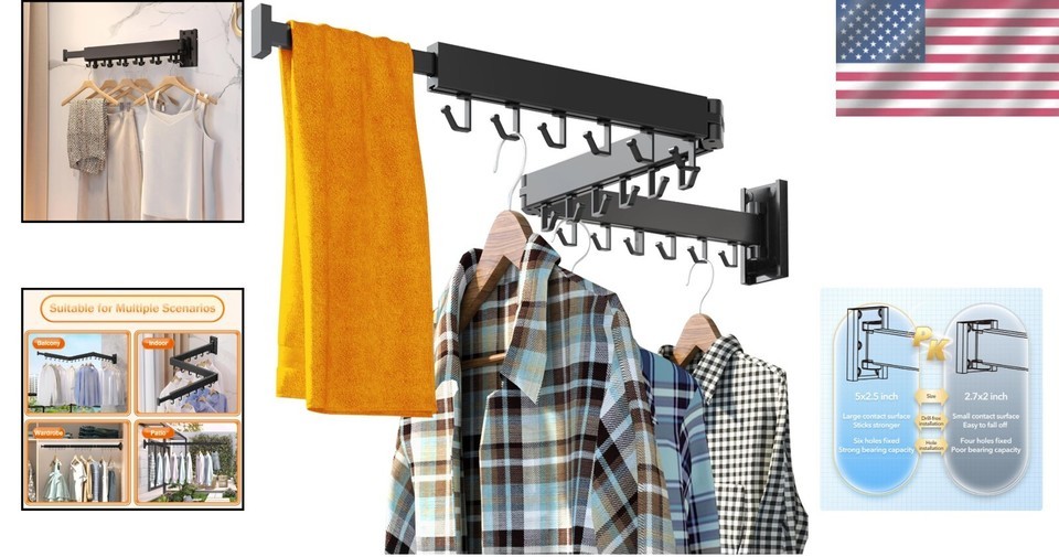 Retractable Folding Clothes Hanger Rack - 150 lbs Capacity & No Drill Install