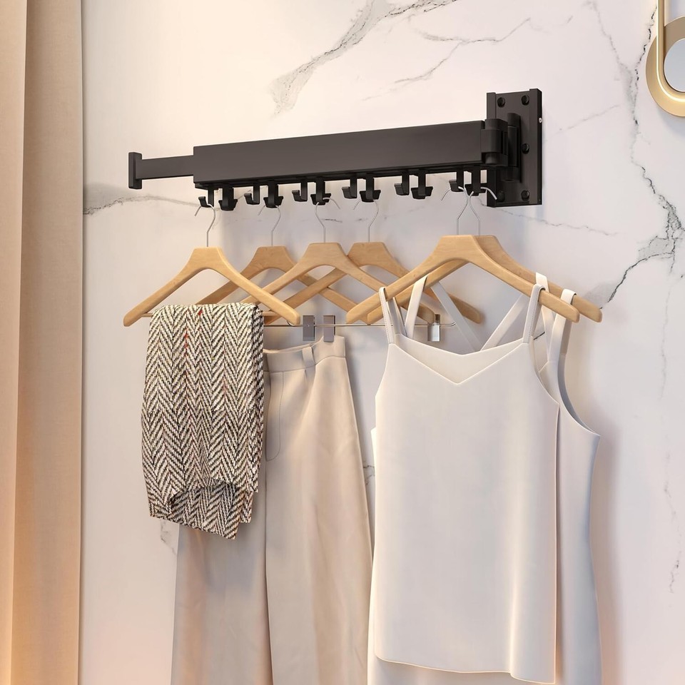Retractable Folding Clothes Hanger Rack - 150 lbs Capacity No Drill Install