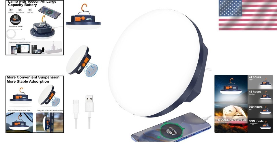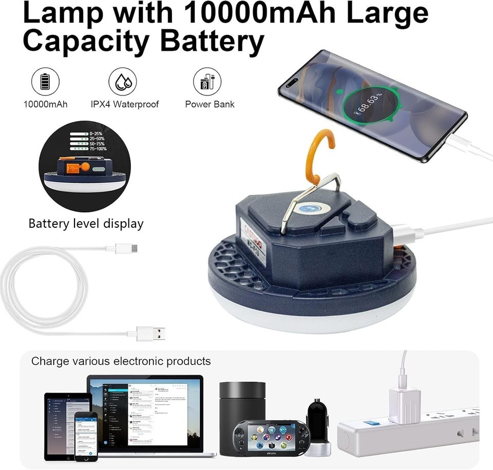 Bright Waterproof Camping Lantern with 10000mAh Battery & Adjustable Settings