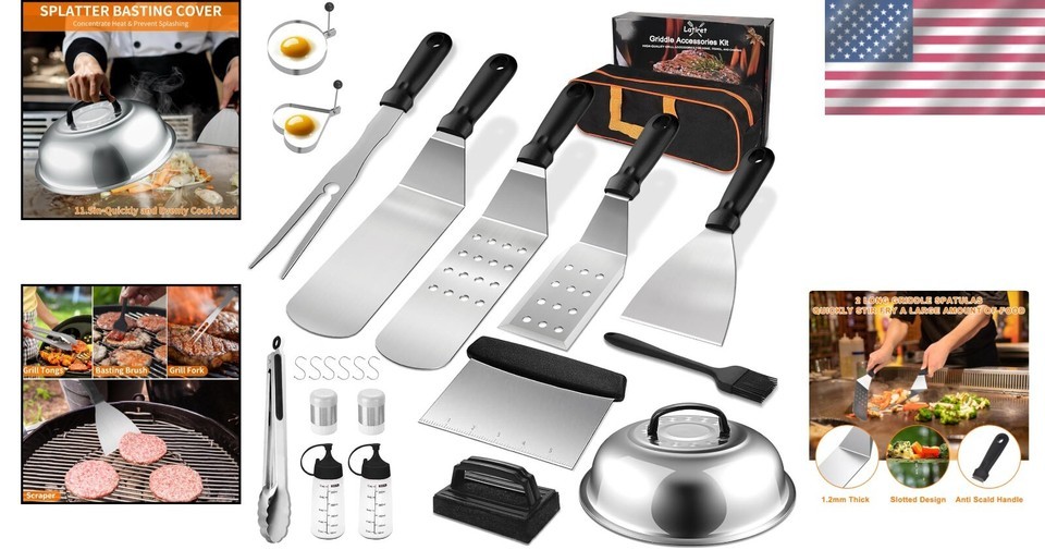 23-Piece Stainless Steel Griddle Accessories Kit for Outdoor BBQ Enthusiasts