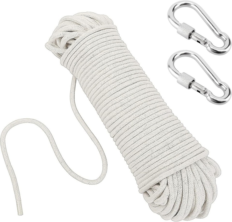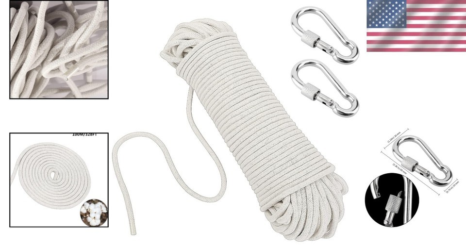Durable 328 FT Cotton Cord - 1/4 Inch Soft Craft String with 4 Metal Snap Hooks