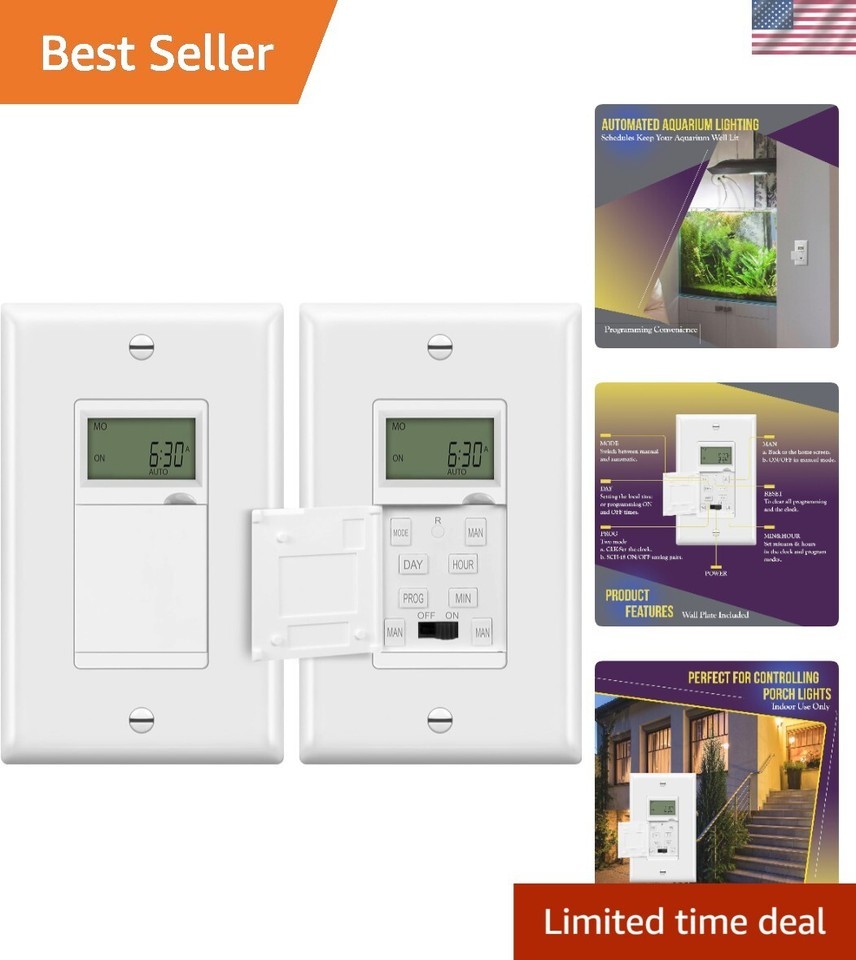 2-Pack Programmable Digital Timer Switch for Energy-Efficient Home Automation