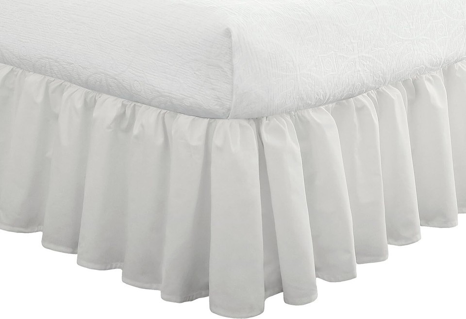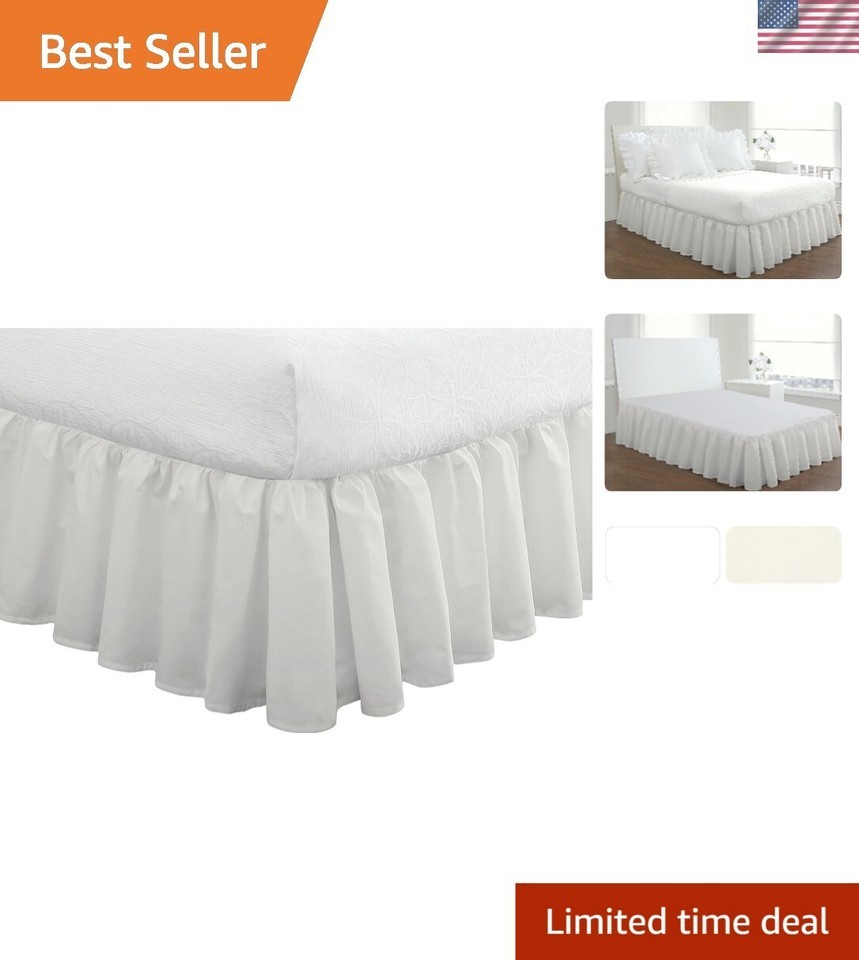 Classic Queen Size Ruffled Bed Skirt in White - 14-Inch Drop, Machine Washable