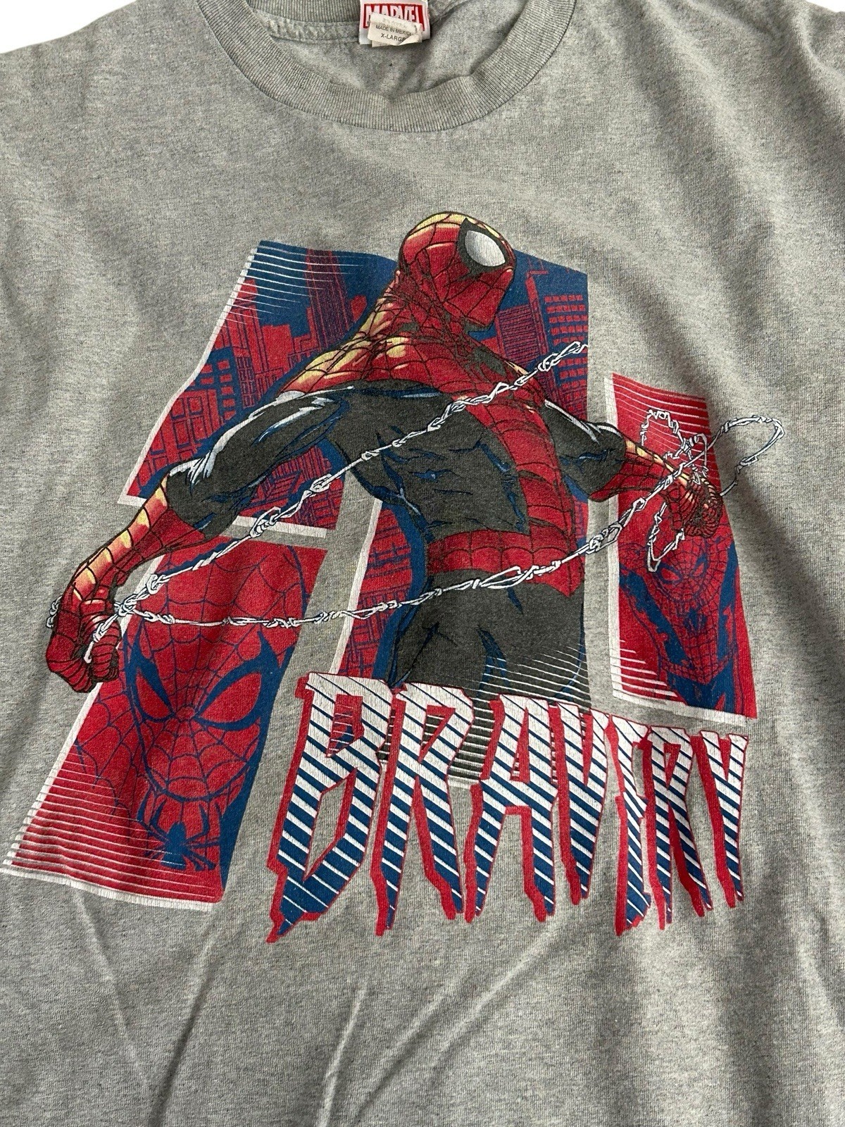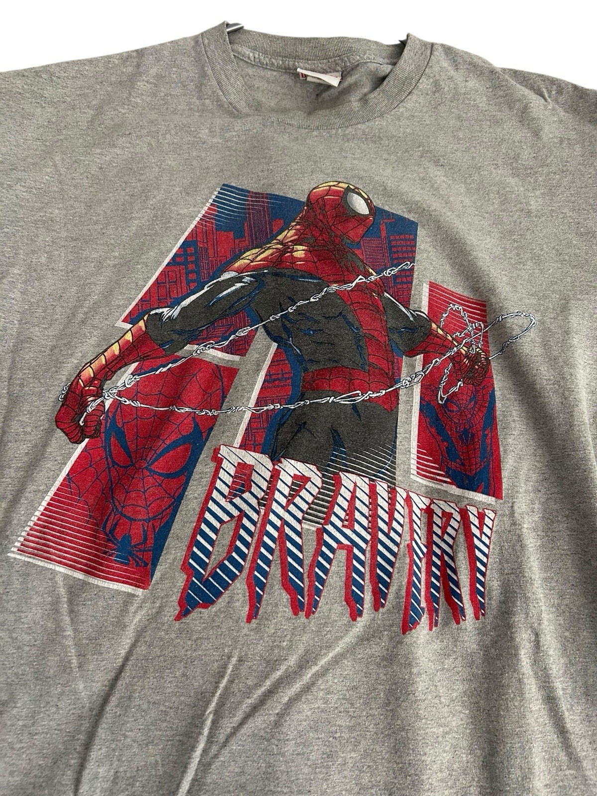 Marvel Spider-Man T-Shirt Bravery Graphic Crew Neck Gray Men's XL Y2K 2000's