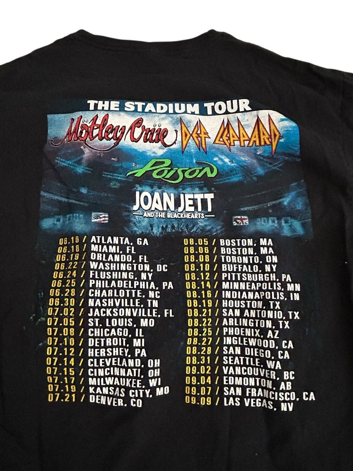 Motley Crue Def Leppard Poison Joan Jett Stadium Tour Shirt L Band Tee 2022 READ