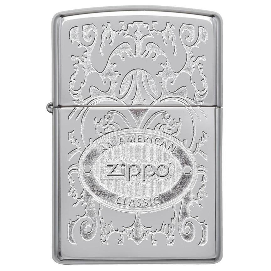 This elegant filigree lighter features the Zippo logo stamped on the top of the lid. This design uses the double lustre imprint method on a High Polish Chrome lighter. Comes packaged in a gift box. For optimal performance, fill with Zippo lighter fuel.