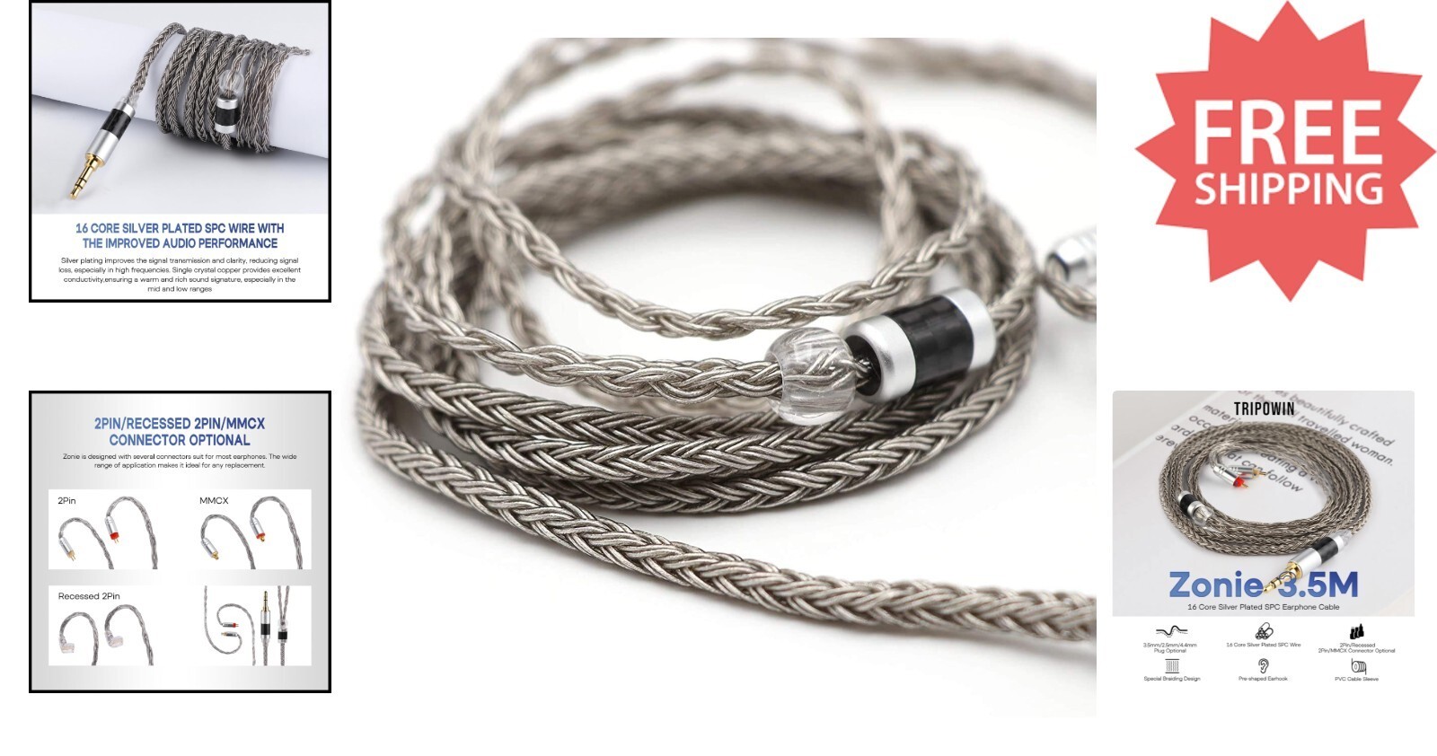 Discover the Tripowin Zonie, a high-quality, budget-friendly HiFi earphone cable designed to elevate your listening experience. Crafted with silver-plated SPC wire and featuring 16 cores, this cable delivers brighter, more realistic sound with less distortion across all frequencies. Its wide compatibility includes MMCX, 2PIN, and recessed 2-pin connectors, making it suitable for most devices and earbuds.