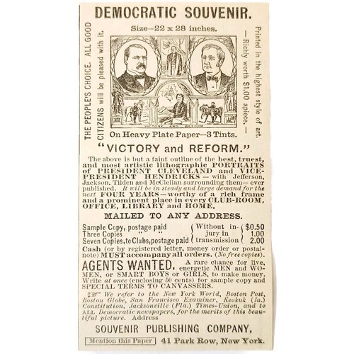 President Cleveland Democratic Souvenir 1885 Advertisement Victorian ADBN1A13