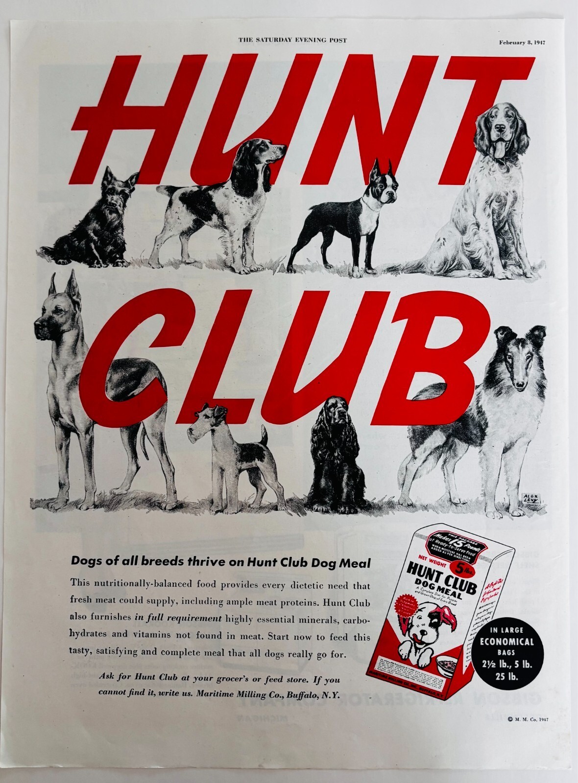 1947 Hunt Club Dog Meal Food Advertisement and 50 similar items