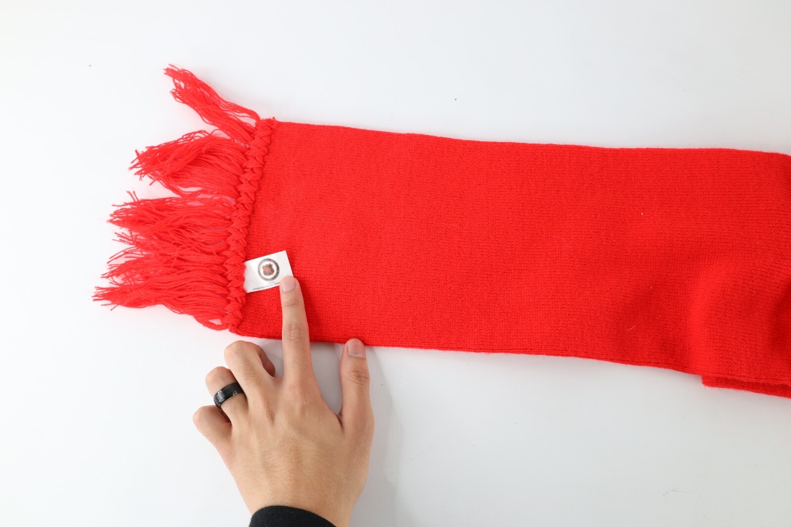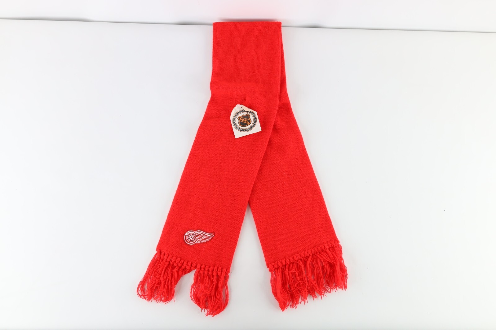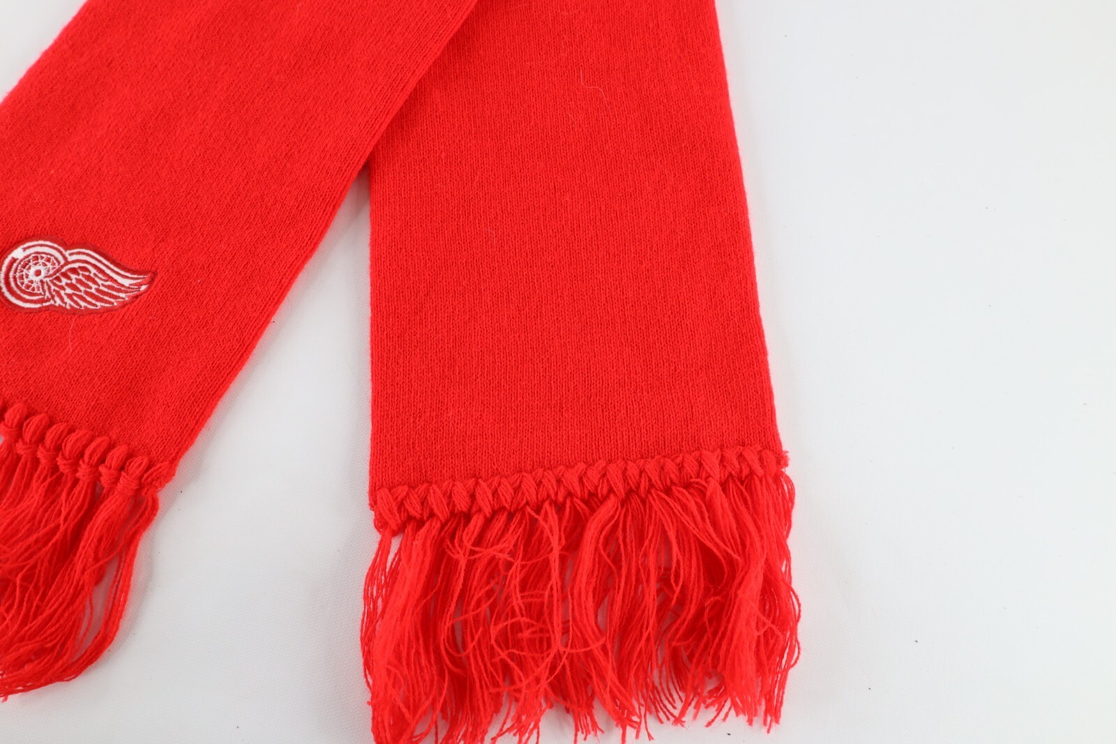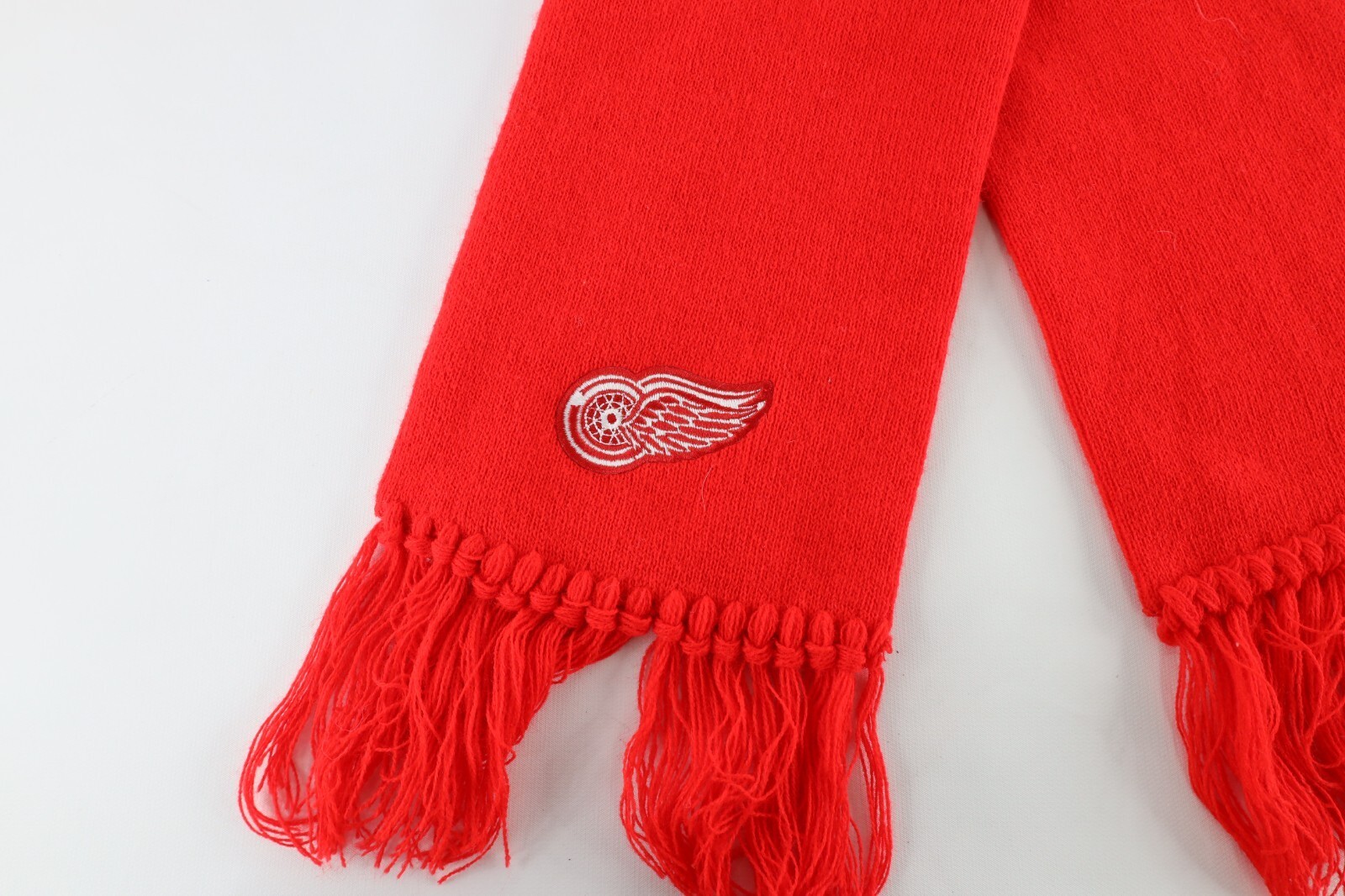 NOS Vintage 90s Detroit Red Wings Hockey Fringed Knit Winter Scarf Neck Cover