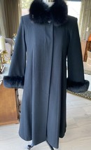 Elegant fully lined lambswool coat with genuine fox fur collar and cuffs. Beautifully cut to provide an amazing flowing hour glass shape. Very slimming. Multiple back seams to allow tailoring if needed.
