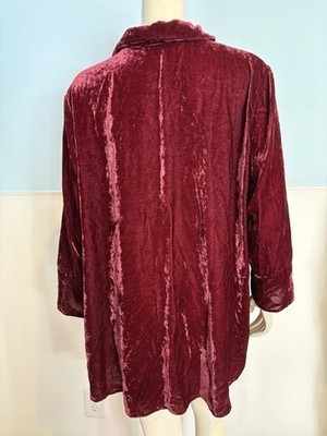 Habitat Women's 3/4 Sleeve Velvet Button Front Burgundy XL