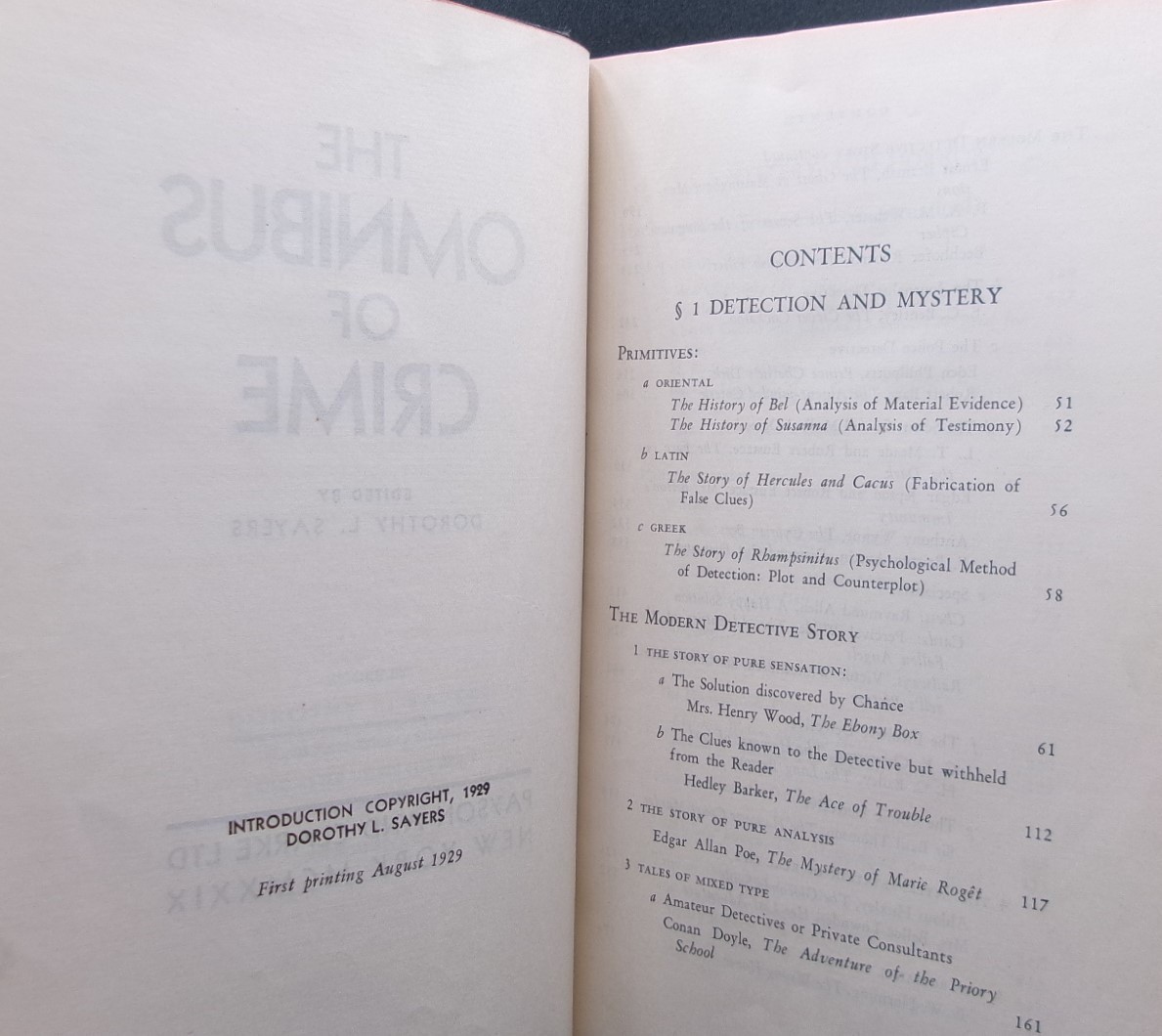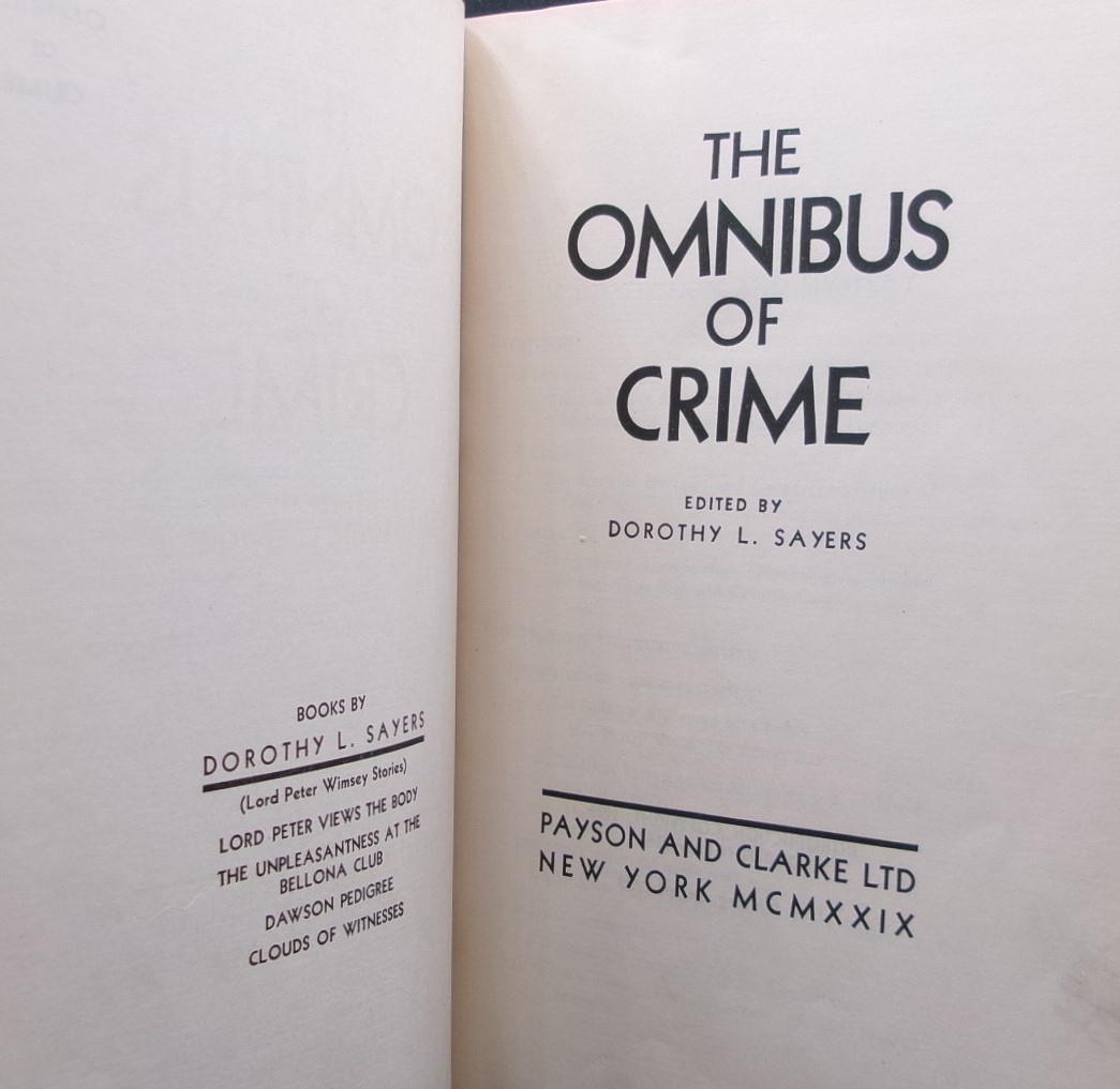 Edited by Dorothy L. Sayers THE OMNIBUS OF CRIME First U.S. edition 1929 Classic