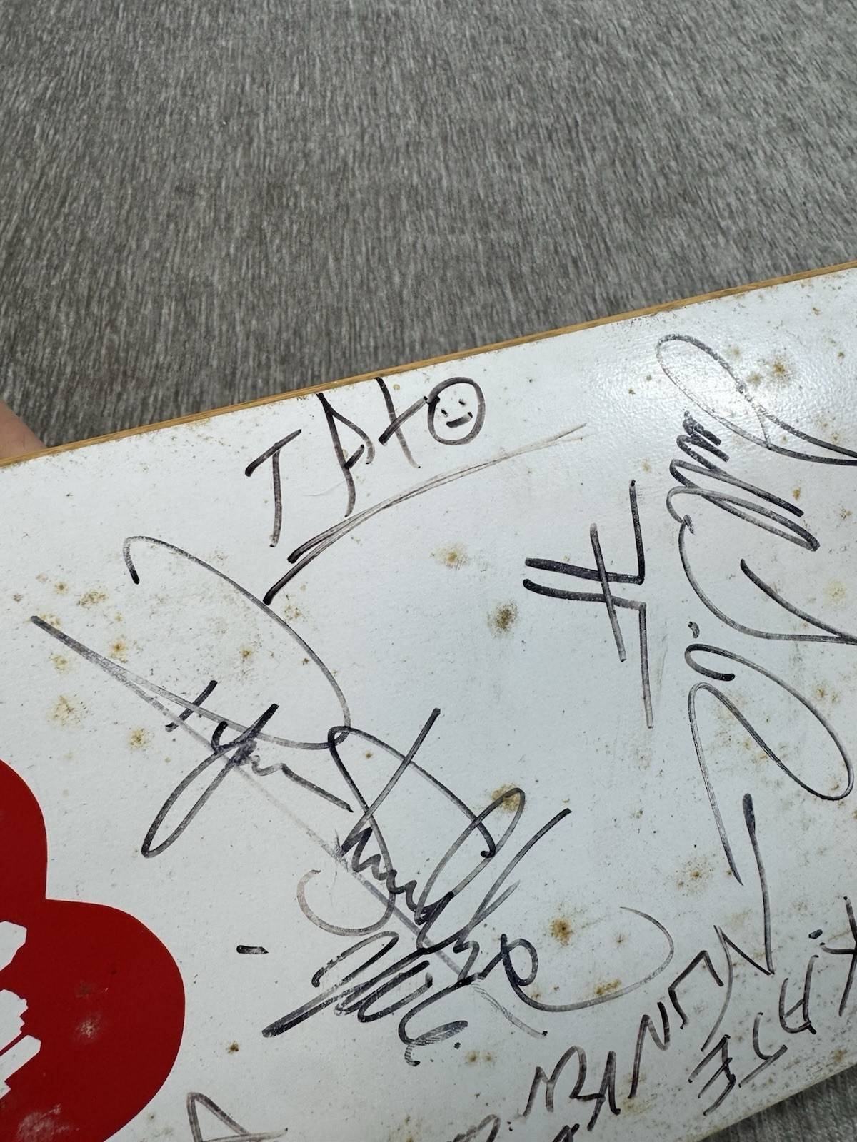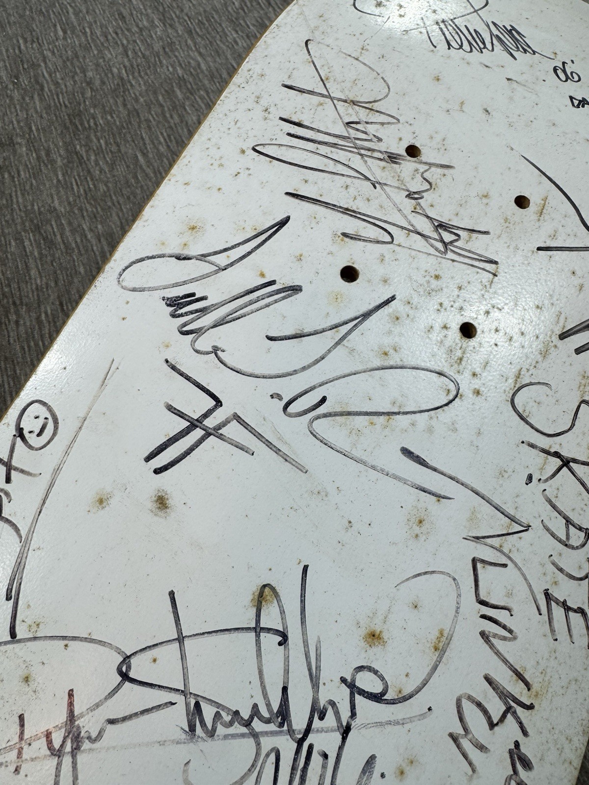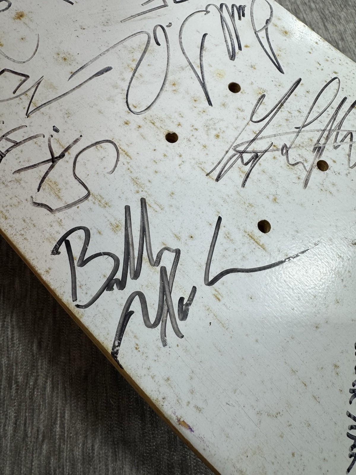 Guaranteed authentic signatures acquired at Tampa skatepark. There is spotting on the board as seen from storage. Does have some surface wear, scratches, some scuffs on signatures as seen. Some of the signatures have faded over time. Please see all photos.