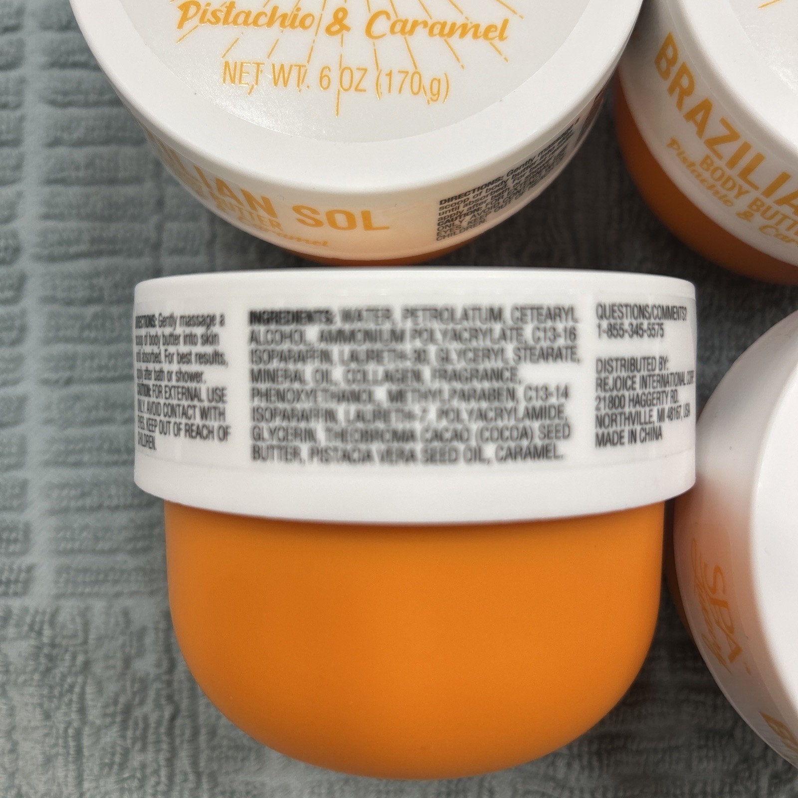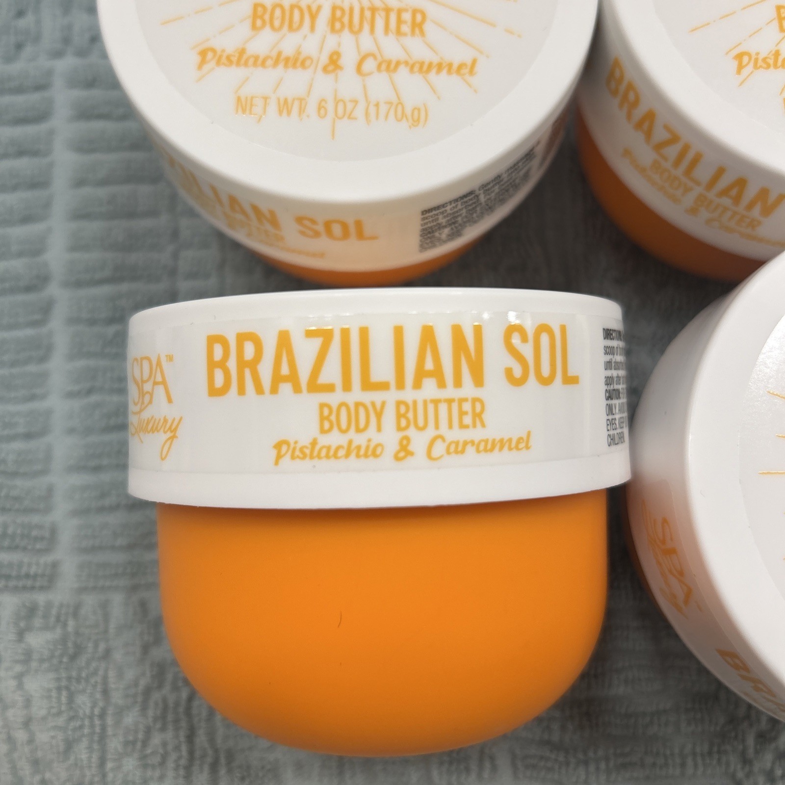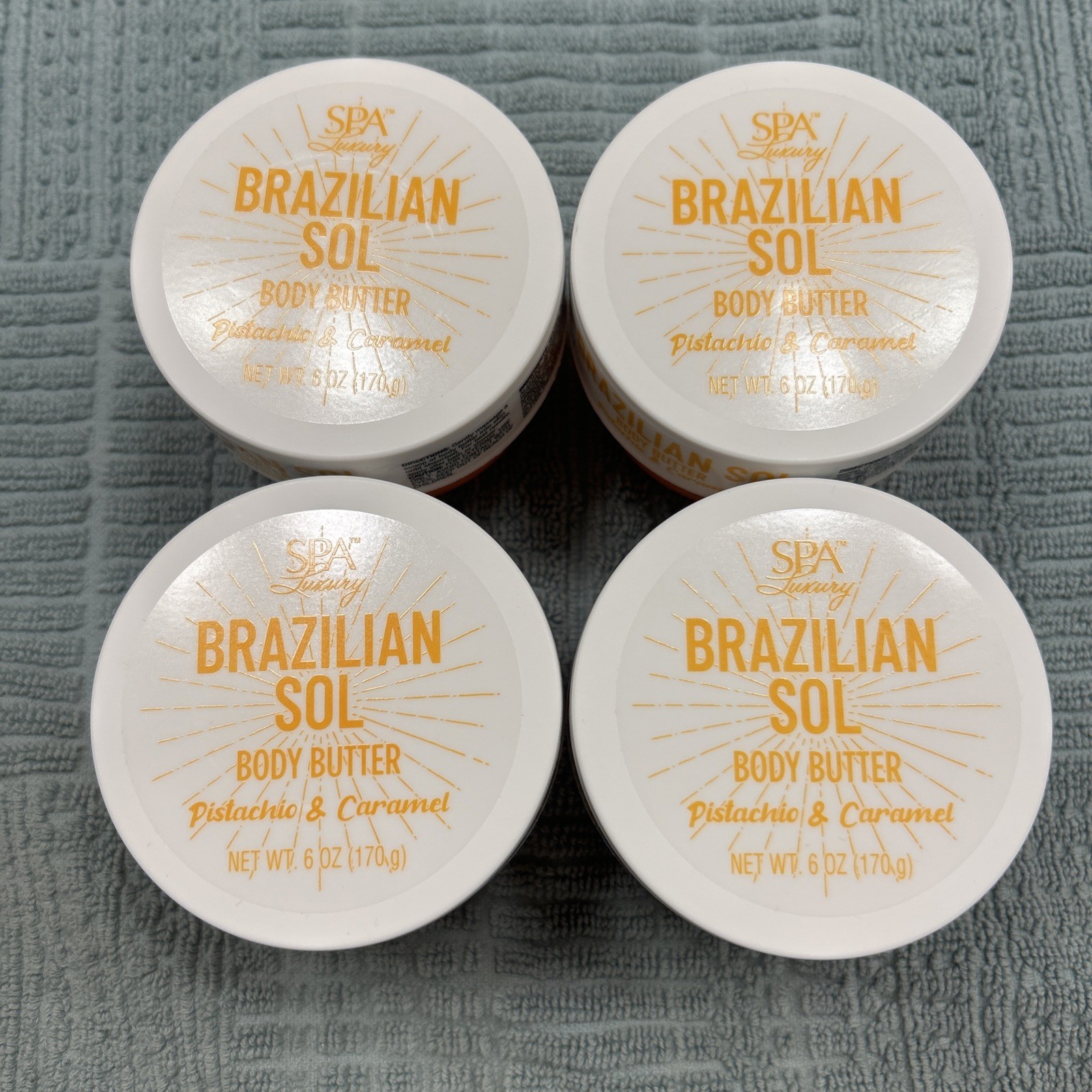 Lot of 4 Spa Luxury Brazilian Sol Body Butter Pistachio Caramel 6oz Each New.