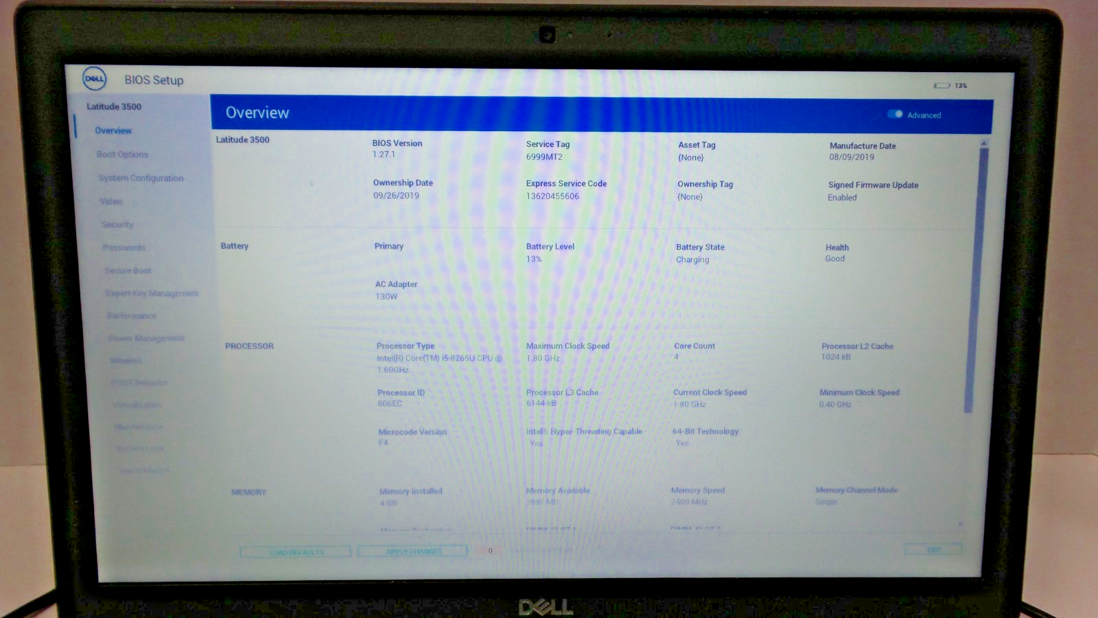 DELL Latitude 3500 Laptop (08BD) | 15.5" | Core i5-8265U | 4GB | FAILING BATTERY