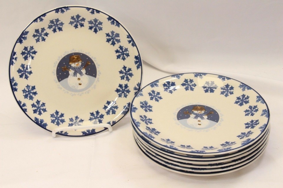 Folkcraft Cameo Snowman Christmas Salad Plates 7-3/4" Lot of 7 Xmas