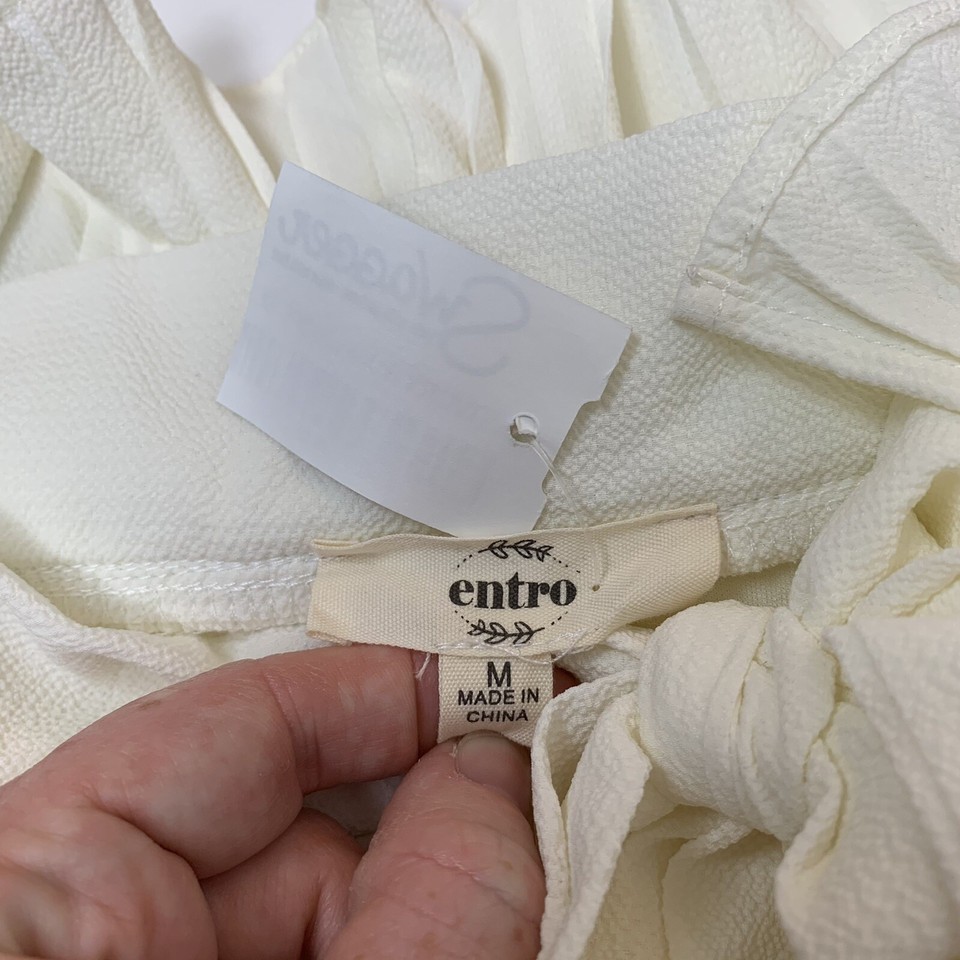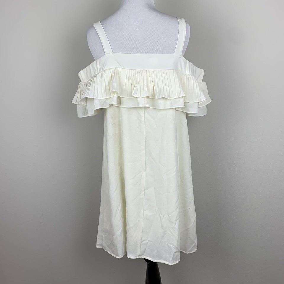 Entro Women’s Cream Off The Shoulder Dress Medium Ruffle Sleeve Bow Tie Ivory