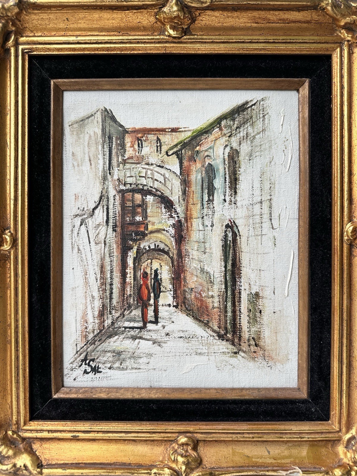 Solomon Azoulay Signed Judaica Jerusalem Cityscape Painting In Gold Frame