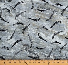 Cotton Guns Weapons Revolvers Western Gray Fabric Print by the Yard D471.59