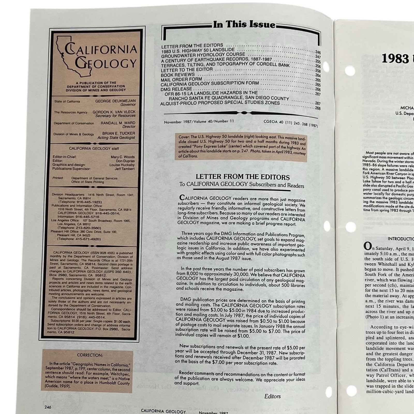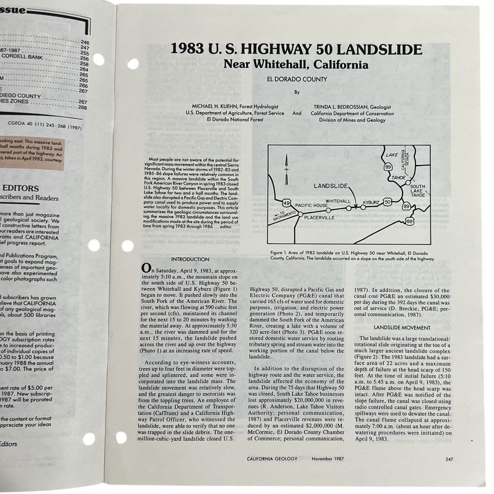California Geology Magazine Conservation Mines November 1987 Hwy 50 Landslide