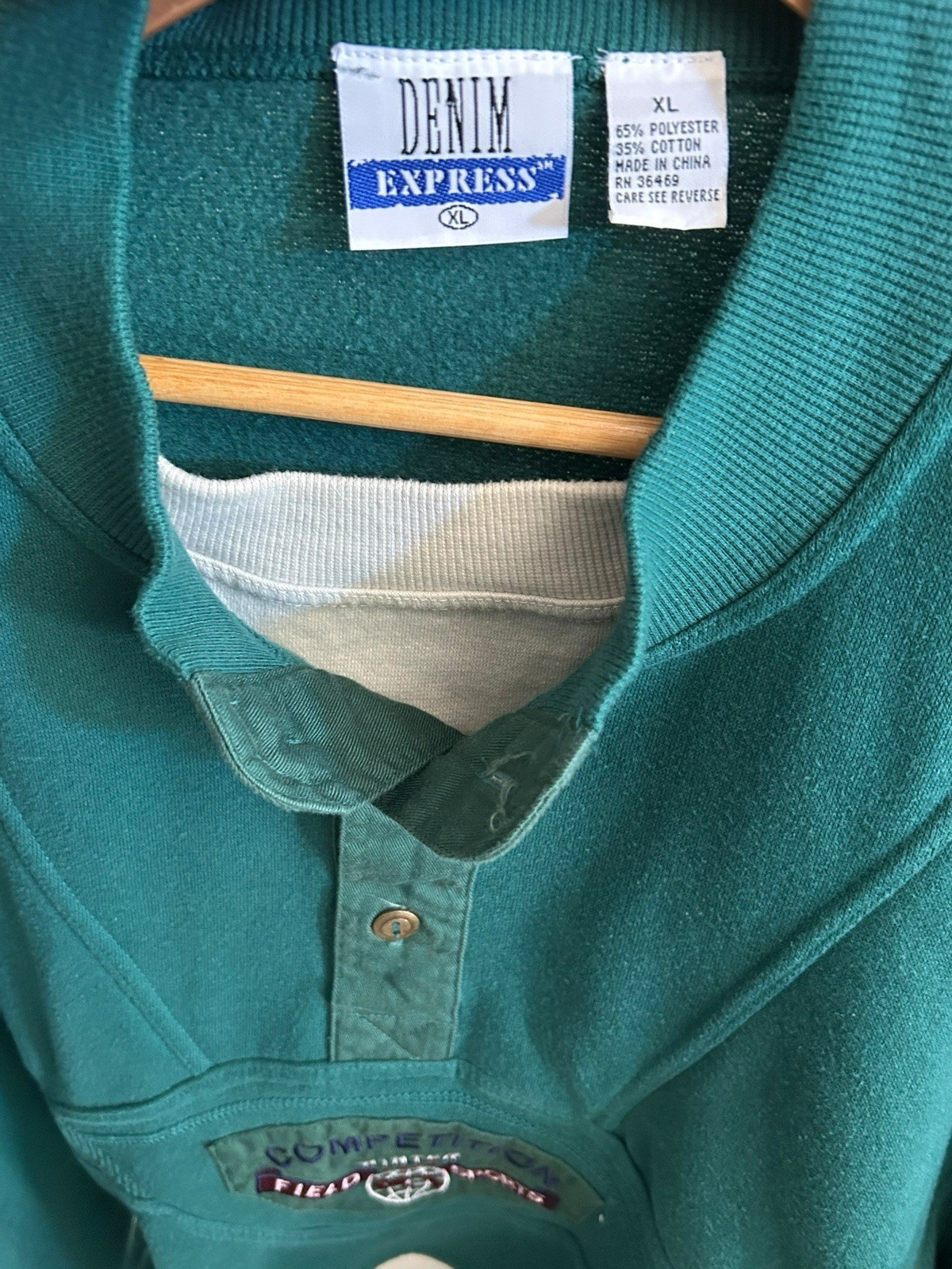 Denim Express Competition Field Sports Green Henley Sweatshirt XL Rugby 90's