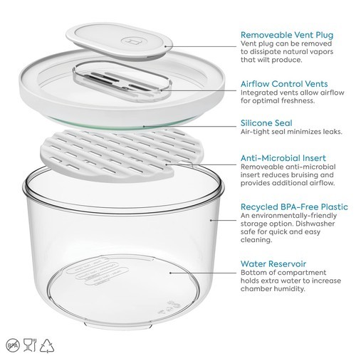CONTROLS AIRFLOW AND HUMIDITY: Airtight lid with integrated vent and removable cover allow you to adjust the humidity inside the bowl, and the bottom compartment can be filled with water for extra humidity