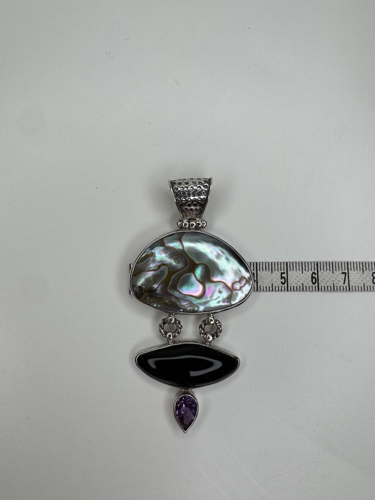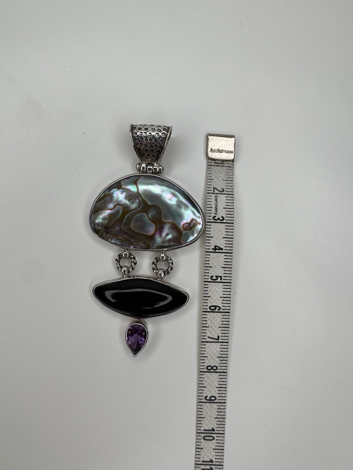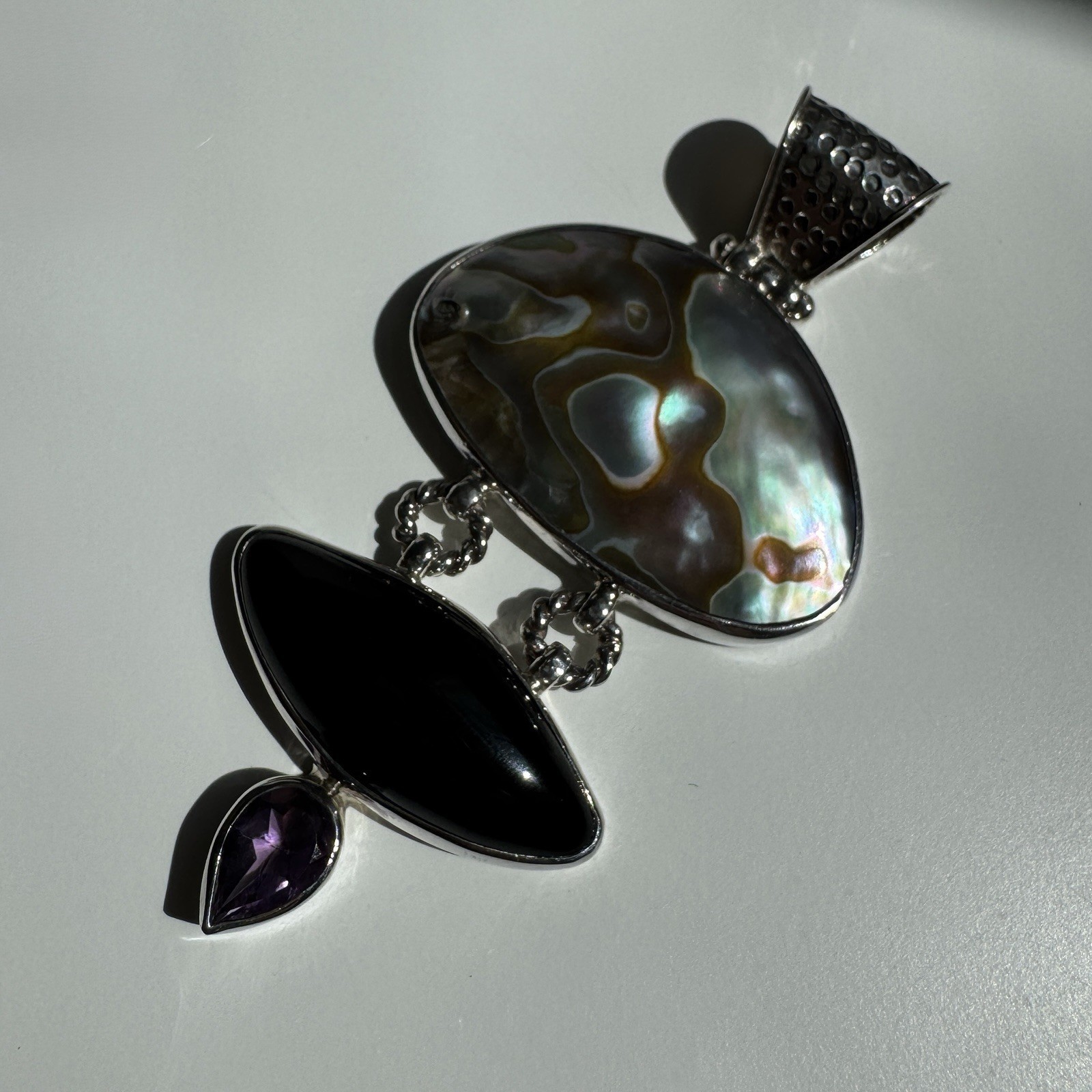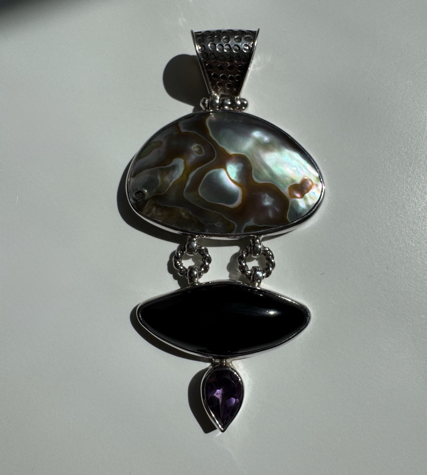 Vintage Silver 925 Pearl Onyx Amethyst Large pendant