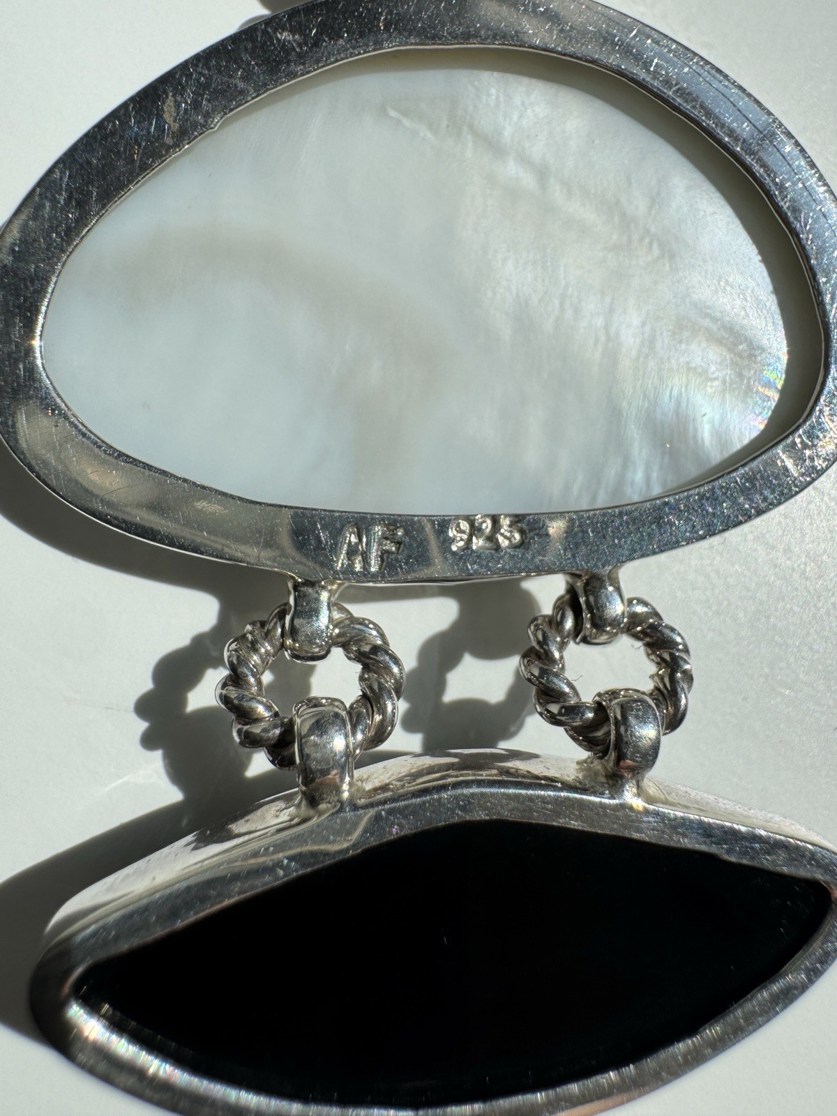 Vintage Silver 925 Pearl Onyx Amethyst Large pendant signed AF