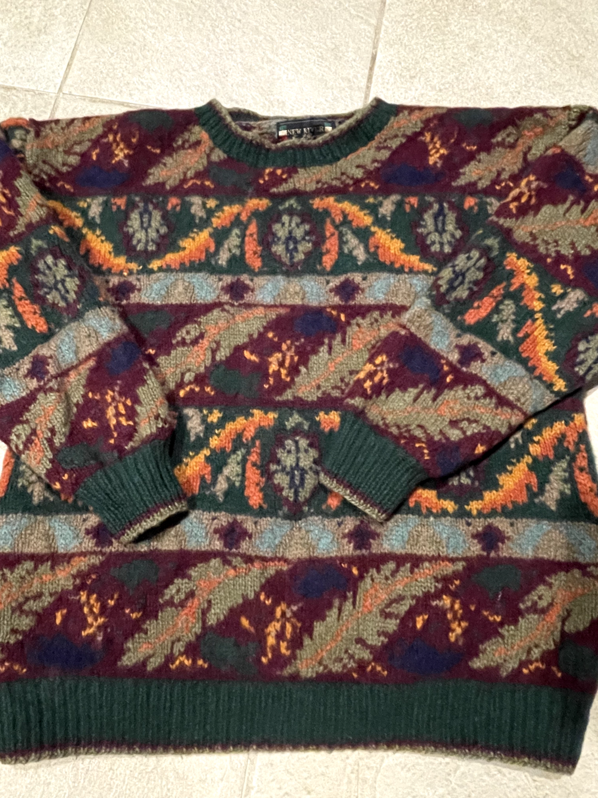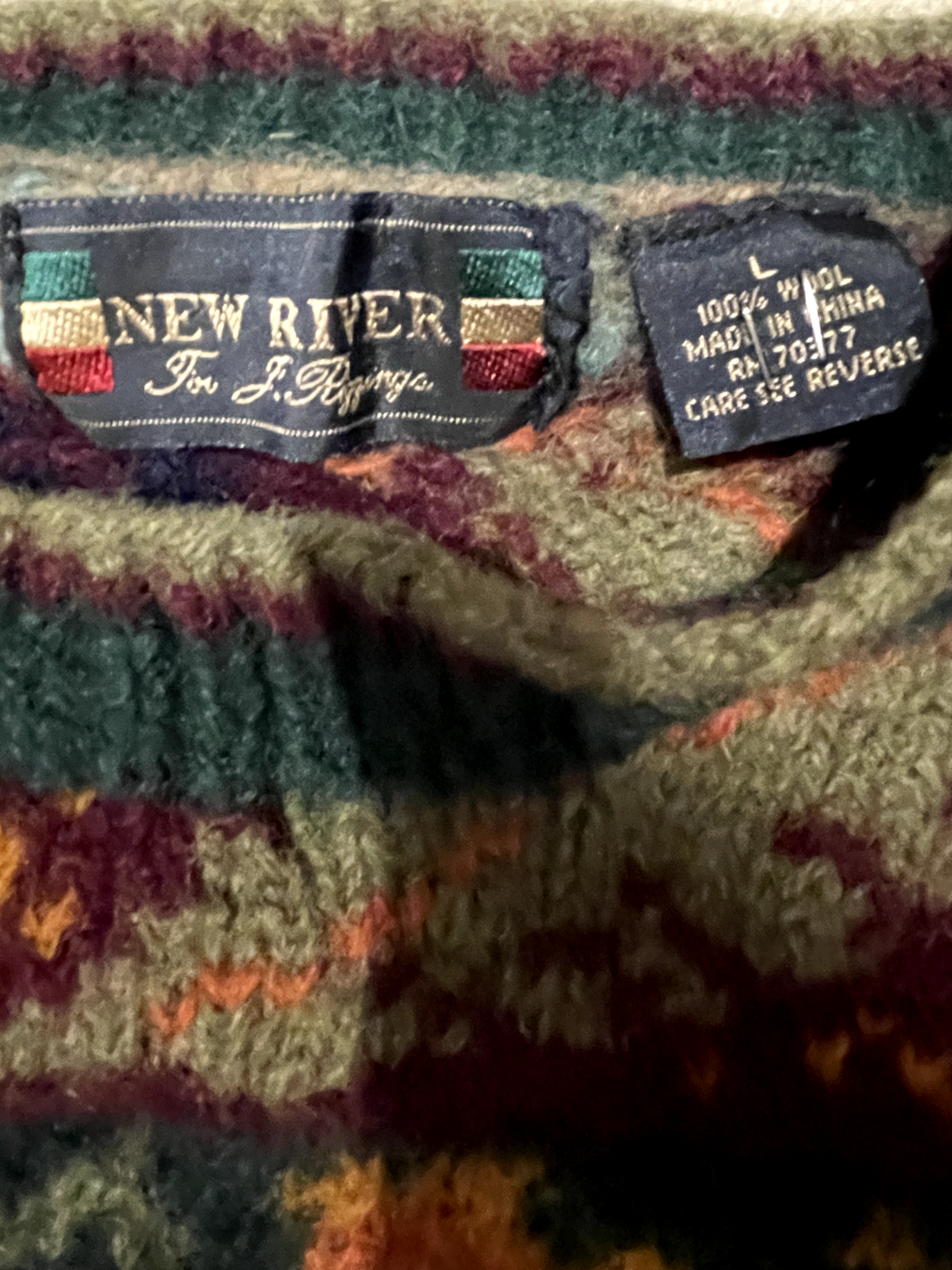 Vintage New River 100% PURE Wool Multicolor Sweater Sz L Unisex