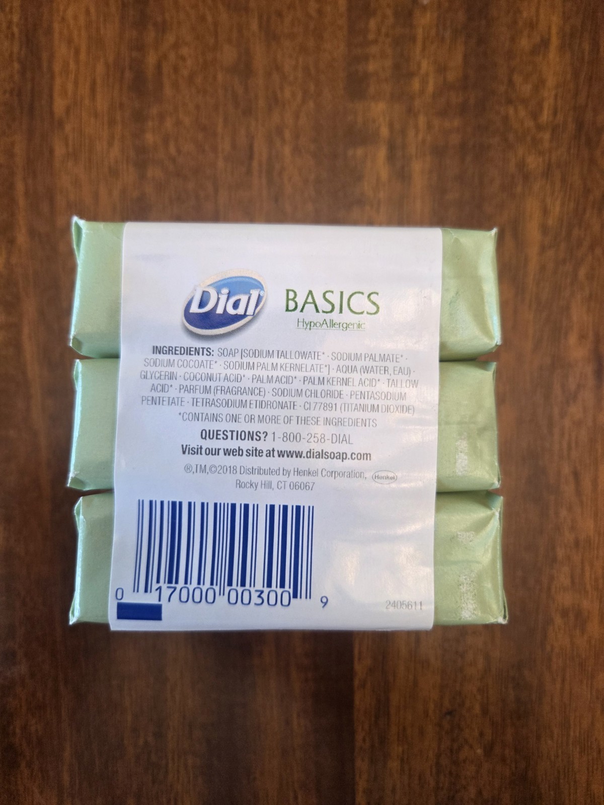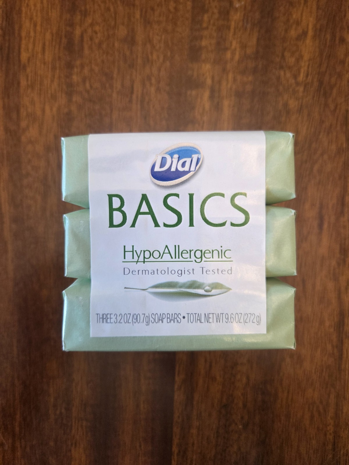 Dial Basics Hypoallergenic Bar Soap, 3 Bars, 3.2 oz Size. Total 9.6 oz