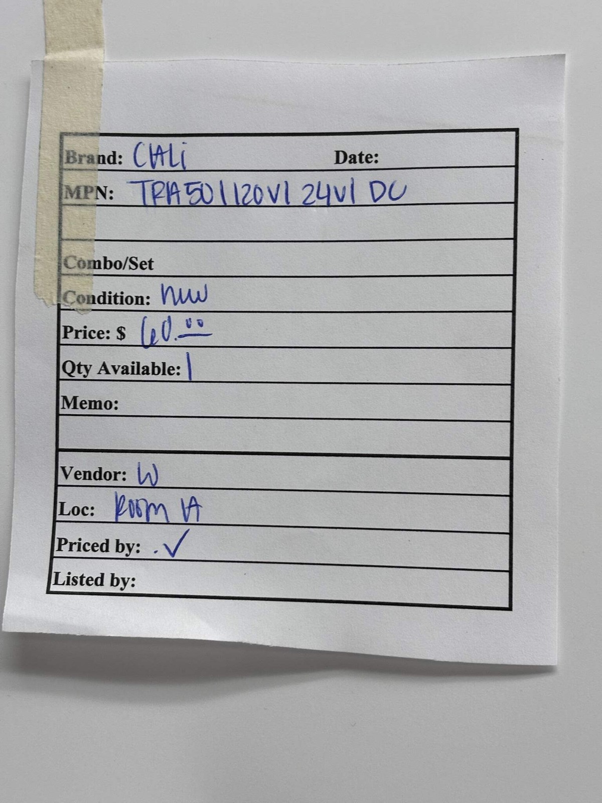 Cali TRA 50 120V AC to 24V DC, 50VA, Encapsulated Enclosure New The Cali TRA 50/120V/24V/DC transformer delivers 50VA of regulated 24V DC power from a 120V AC input, making it ideal for low-voltage lighting and control applications. Its fully encapsulated, powder-coated housing ensures durability and keeps enclosure temperatures low, even under full load. Built-in self-resetting thermal circuit breakers protect against overload on both primary and secondary sides. UL-rated terminals, dual knockouts, and compact design allow for quick installation. Certified to ETL, UL 1310, and CSA standards, this transformer is reliable for both indoor and outdoor use. Listed by: Kareena (Sales Team) "Enjoy the little things, for one day you may look back and realize they were the big things.?? Robert Brault (A positive moment brought to you by Help Resale) About Us Welcome to Help Resale, your go-to consignment shop where value meets quality. At Help Resale, we're dedicated to providing you with an exceptional shopping experience, whether you're looking to find the best deals or consign your items. Need to buy a product, but don't see it in our store? Please feel free to reach out to us and we will help you find it! Help Resale 7200 Fair Oaks Blvd Suite 120 Carmichael CA 95608 Business Hours: Monday-Friday: 9:00 am to 5:00 pm (PST) All product and company names are trademarks TM or registered trademarks of their respective holders. Use of them does not imply any affiliation with or endorsement by them.
