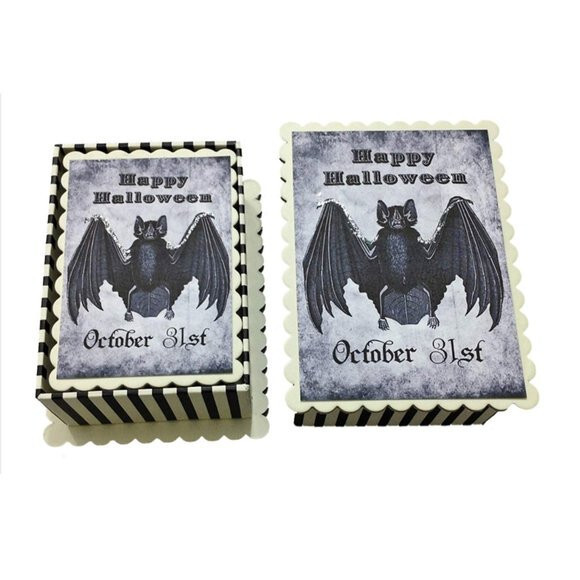 Trinket Keepsake Boxes Happy Halloween Bat Set of 2 Boxes