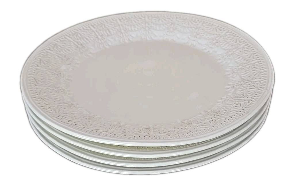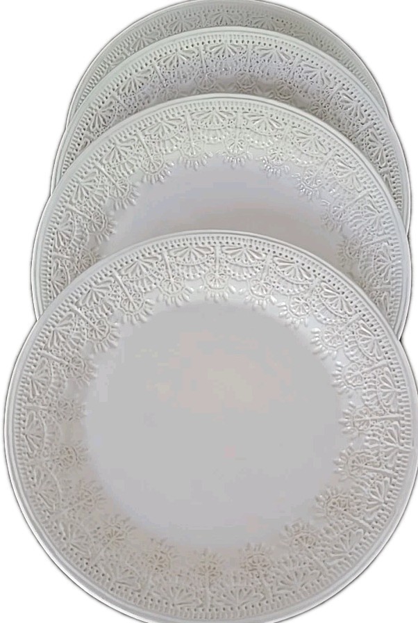 Four (4) Pioneer Woman ~ VINTAGE LACE ~ 10.75 Dia. Stoneware LINEN Dinner Plates
