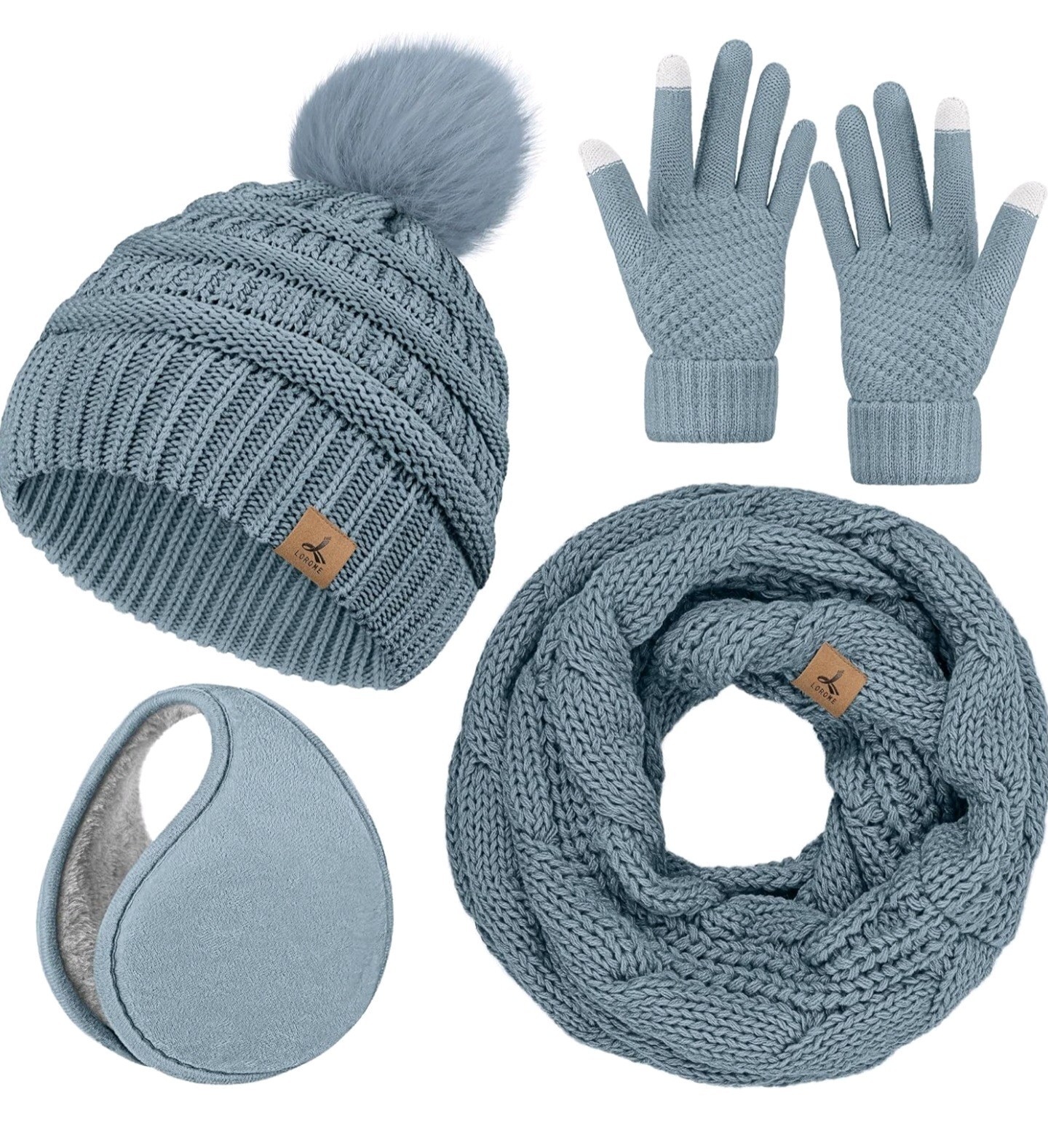 Larome Cozy Winter Knit Beanie, Infinity Scarf, Gloves, Earmuff Set for Women
