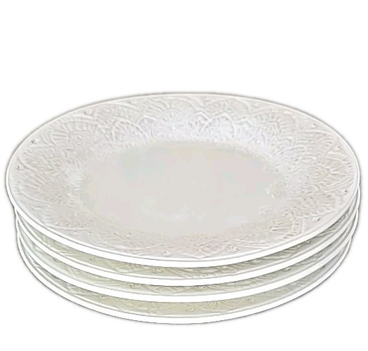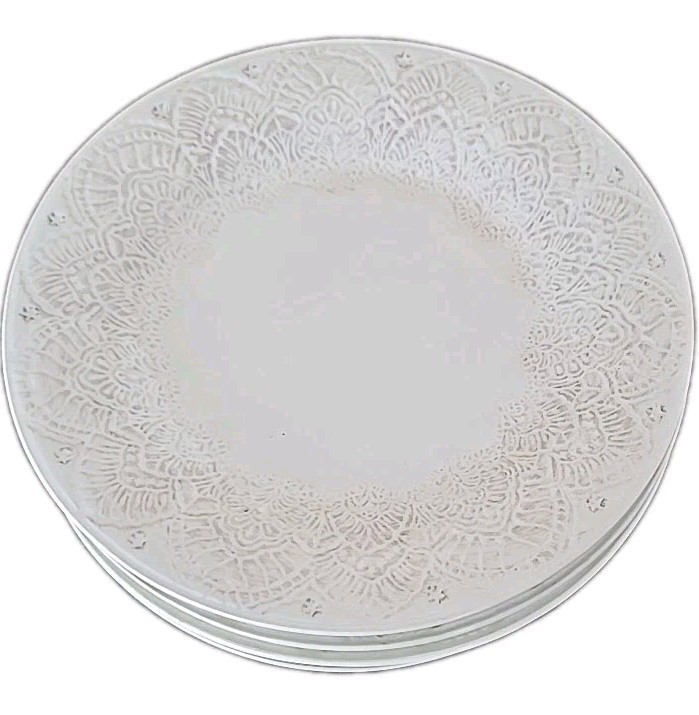 Four (4) Pioneer Woman ~ VINTAGE LACE ~ 8.75" Dia. Stoneware LINEN Salad Plates