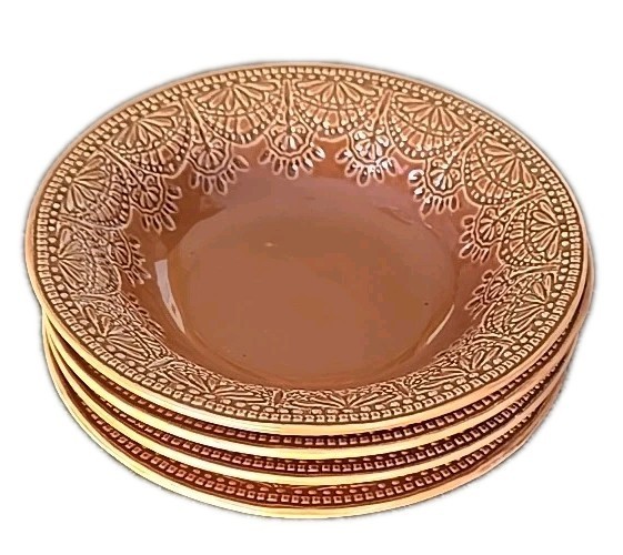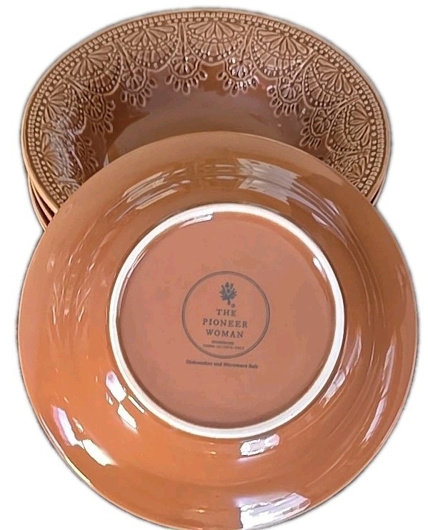 Four (4) Pioneer Woman ~ VINTAGE LACE ~ CARAMEL Bowls ~ 7.5" Dia. ~ 22.5 Ounces