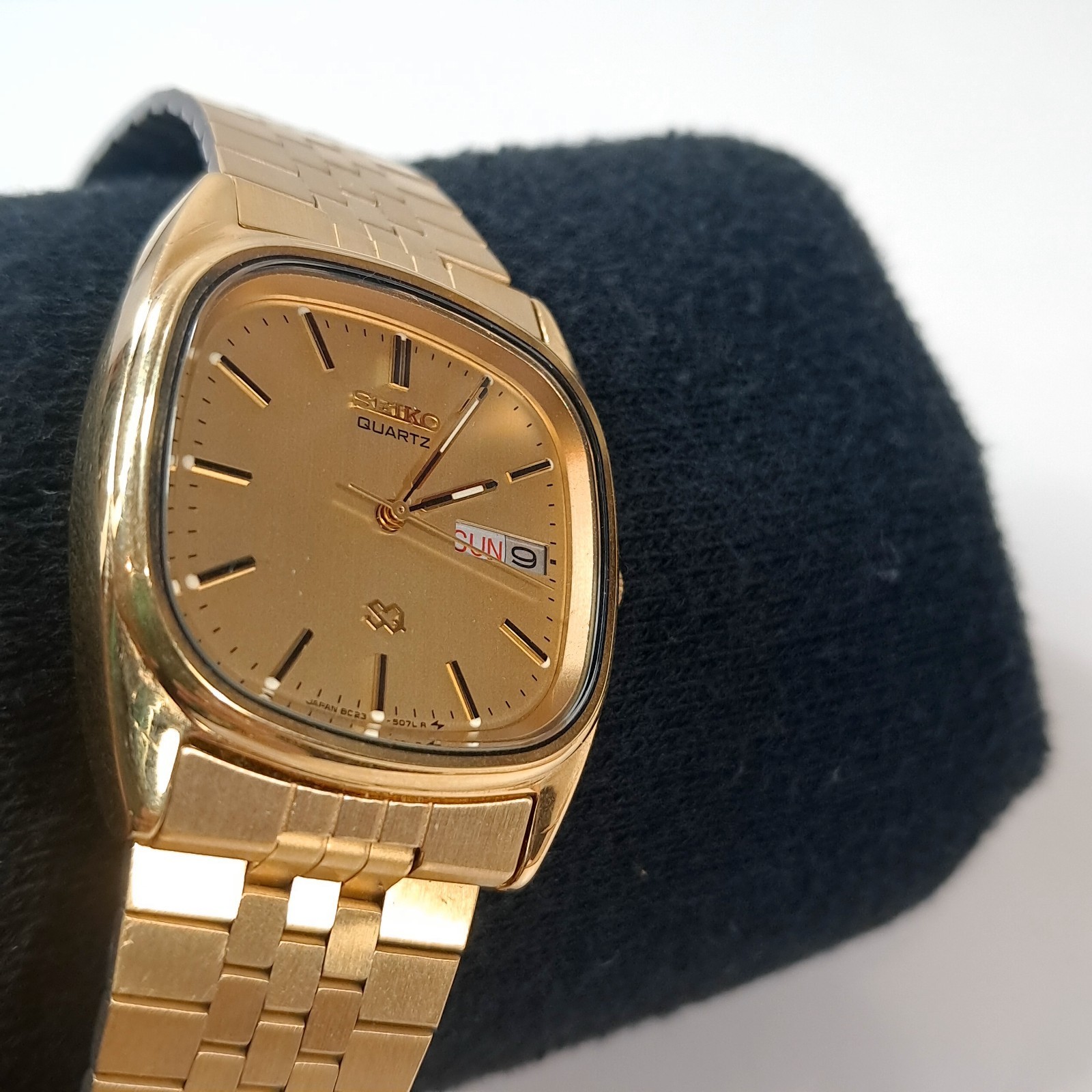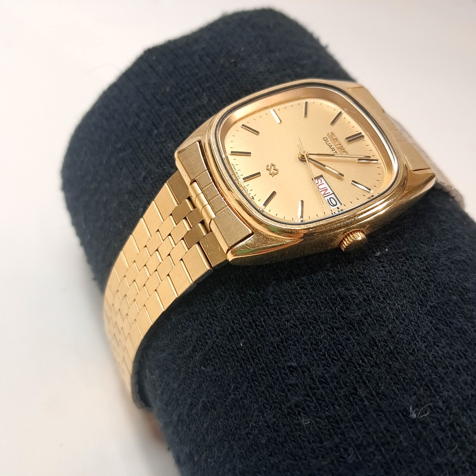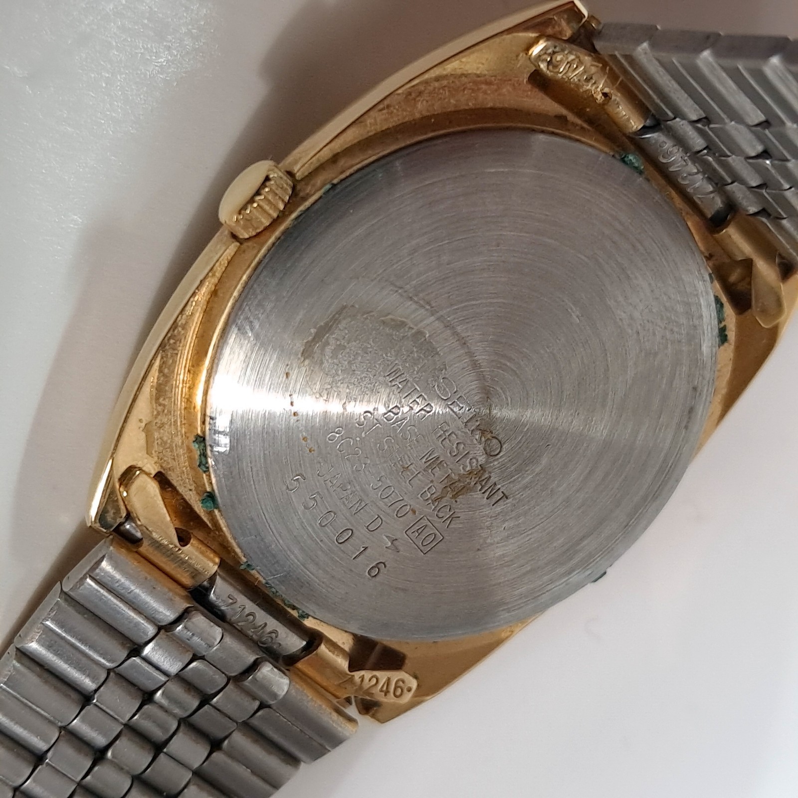 Vintage Seiko 8C23 5070 mens dress Watch Day Date gold SQ Quartz water resistant