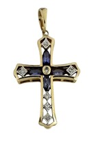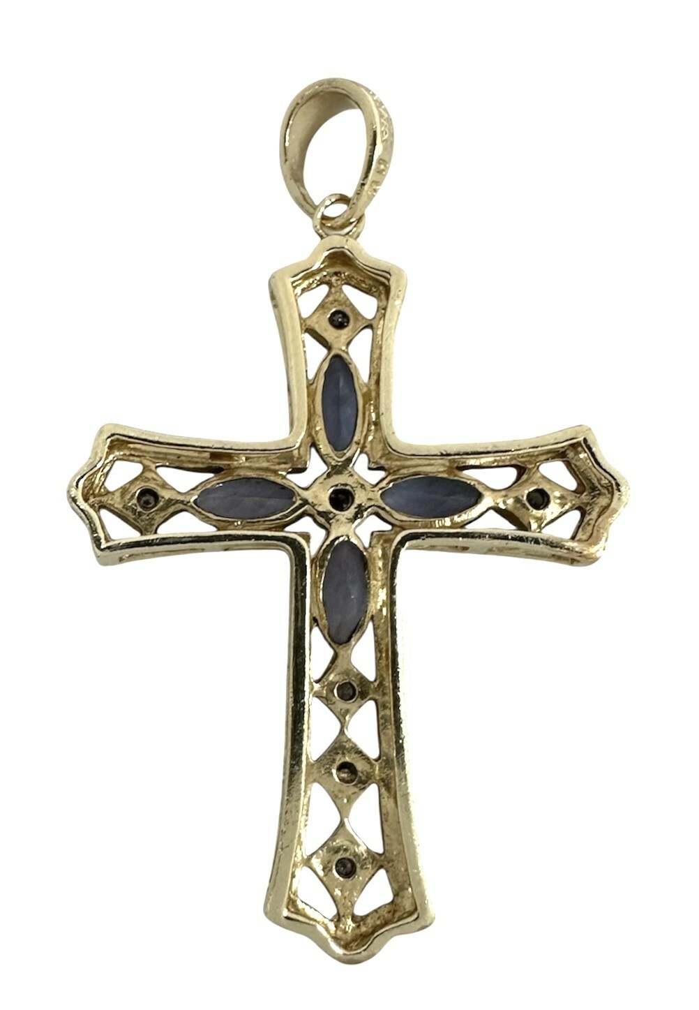 Type: PendantWeight: 2.7Karat: 14ktMetal: Yellow and White GoldGender: UnisexStyle: CrossSize / Length: 1.5"Owner applied: 14k v levian hkStone 1 quantity: 7Stone 1 shape: RoundStone 1 color: ClearStone 1 weight (total): .14Stone 2 Quantity: 4Stone 2 Shape: MarquiseStone 2 Color: PurpleStone 2 Weight (Total): .40Brand: LeVianStone 1 type: DiamondStone 2 Type: TanzaniteCondition:Used